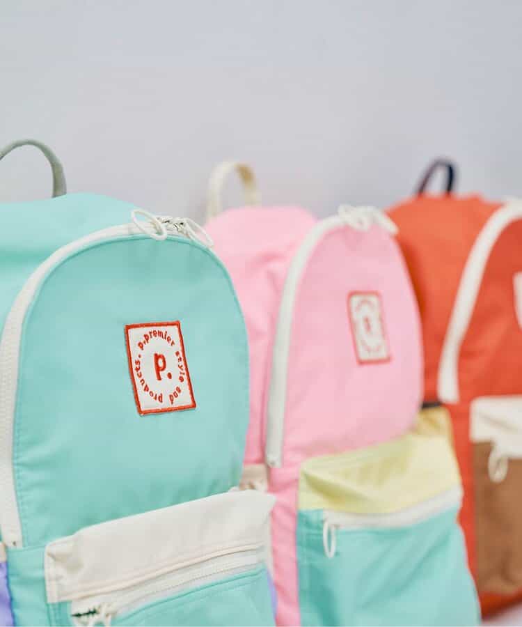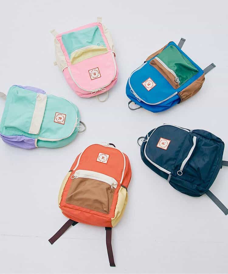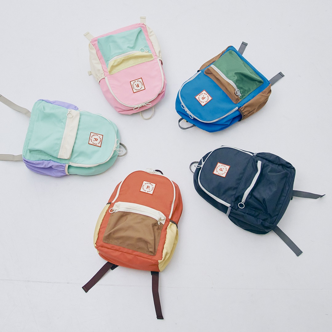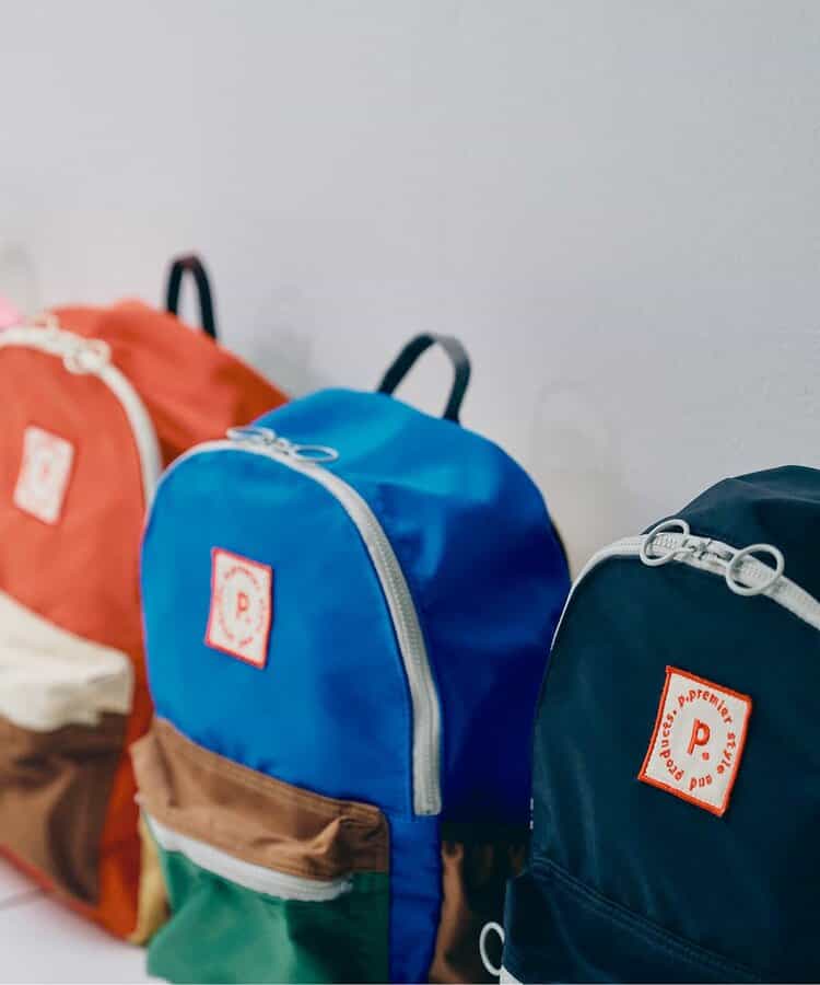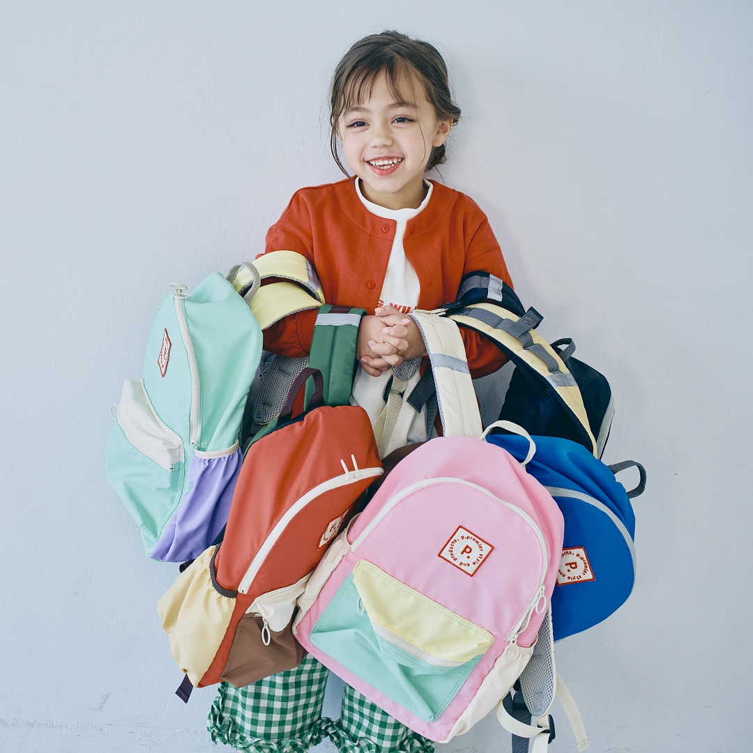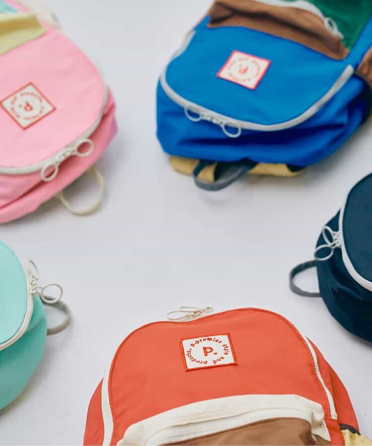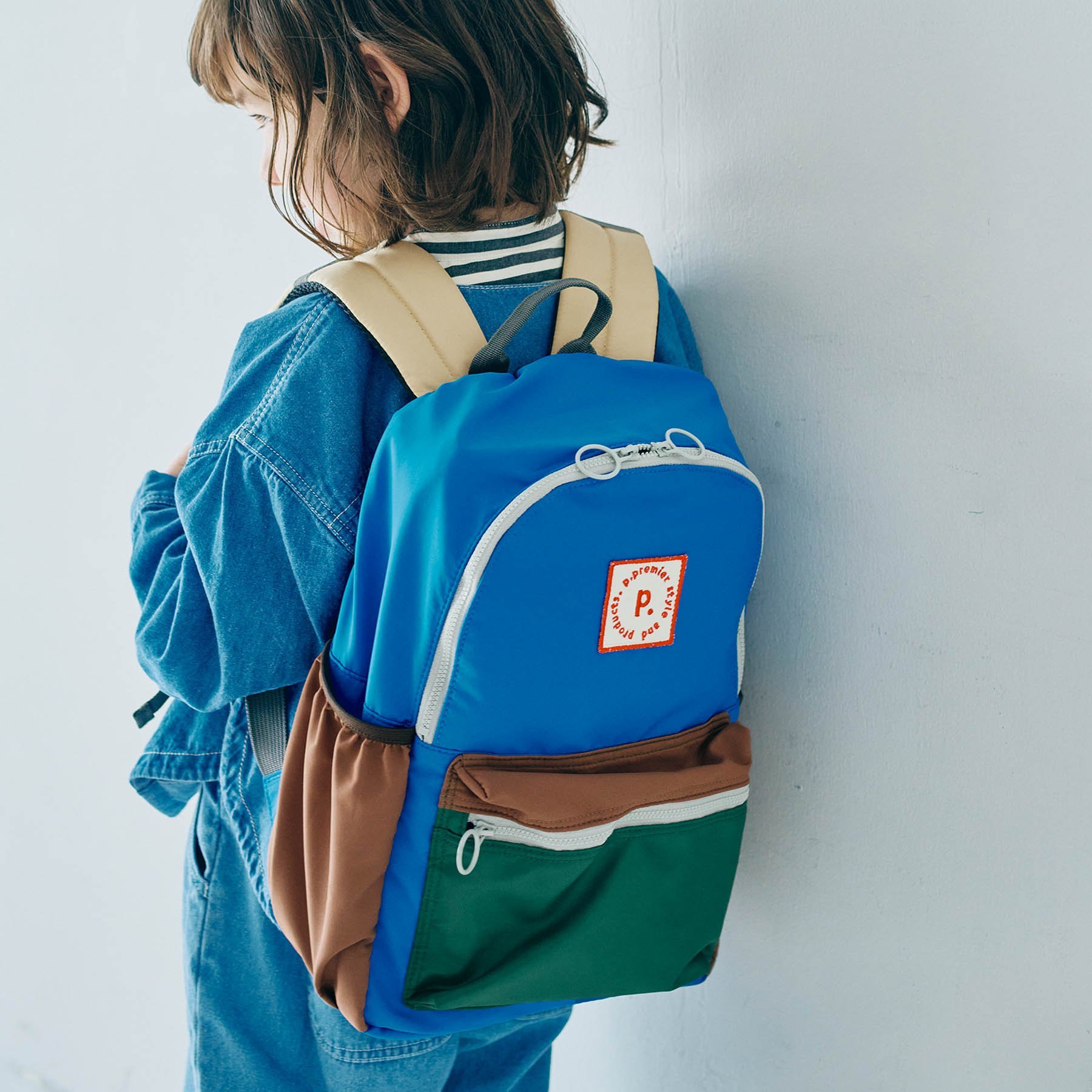 通園通学や遠足にぴったりなp.premierのリュック・チャック付き内ポケット・底のお弁当バンド・鍵フック・暗い時も安心なリフレクター・ペットボトルが入るサイドポケット便利な機能が盛りだくさん!お客様の声をきっかけにバージョンアップして登場!リュックに何が入るかな? p.premier 【リニューアル】マルチカラーリュック ¥3,300 税込 p.premier 【リニューアル】マルチカラーリュック ¥3,300 税込
