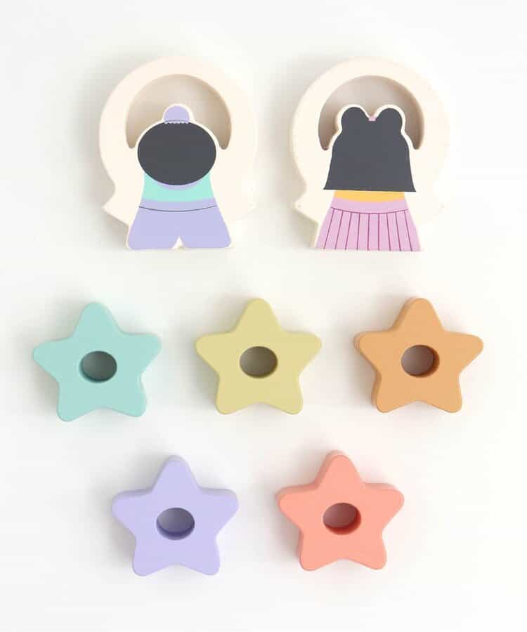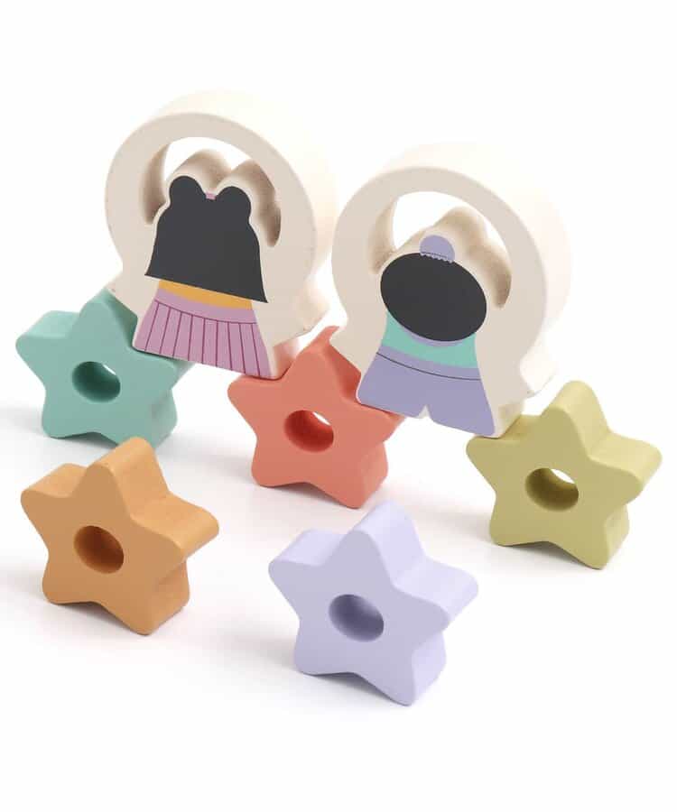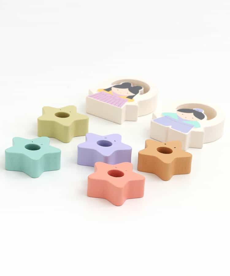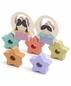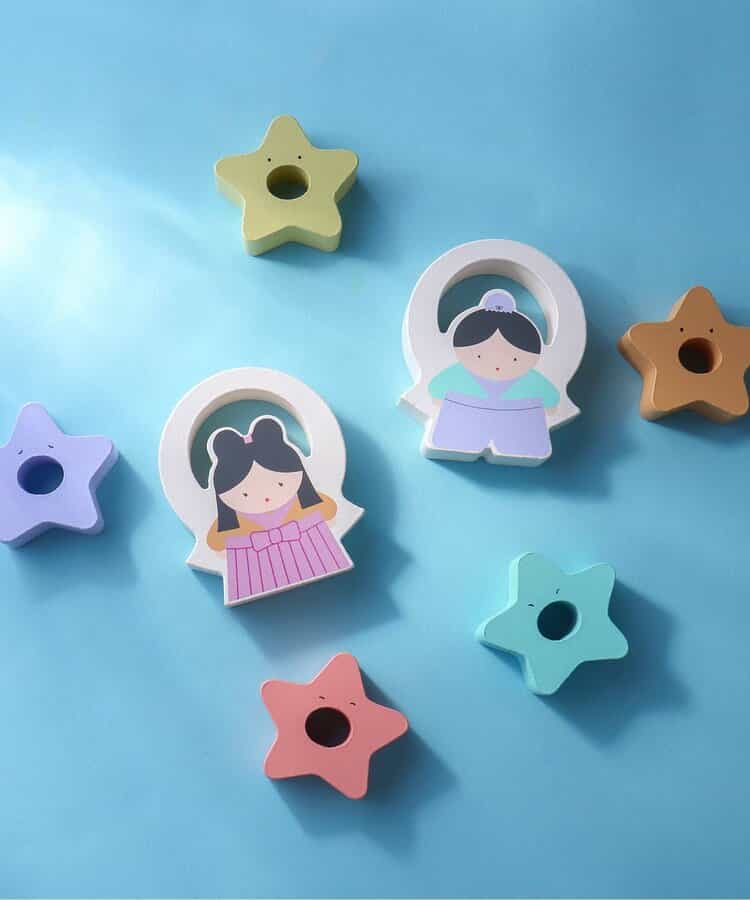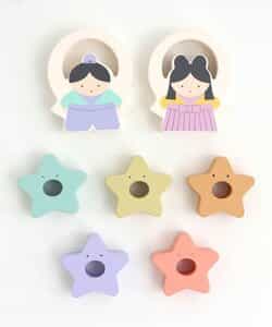 【木製 七夕積み木 おり姫とひこ星】おり姫とひこ星、お星様の積み木セット。積み木として星の上におり姫とひこ星を積みあげたり、人形として遊ぶこともできます。カラフルな色合いで七夕のインテリアとしてもおすすめです♪内容物:積み木(織姫、彦星、星×6個)対象年齢:3歳以上パッケージサイズ:15*13*2.7cm※商品により多少の誤差が生じる事がございます。あらかじめご了承下さい。※ご使用のパソコンやブラウザの環境により、実際の色とは多少異なる場合がございます。