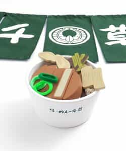 千草のメニューの中でも人気のカツラーメンを木製のおもちゃにしちゃいました!