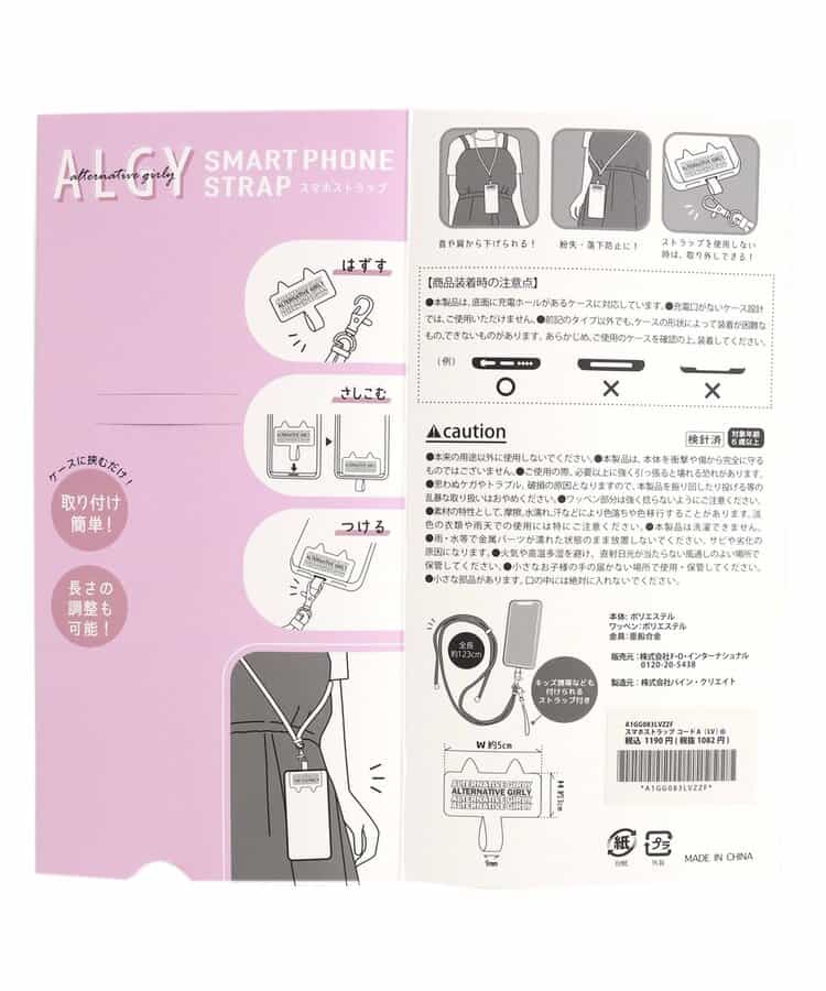 ALGY(アルジー)の雑貨・アクセサリー「スマホストラップ コードA」は、流行に敏感な女のコの日常を可愛く彩るキュートなアイテム!お友達とのお揃いやプチギフトにもおすすめ!対象年齢:6歳以上