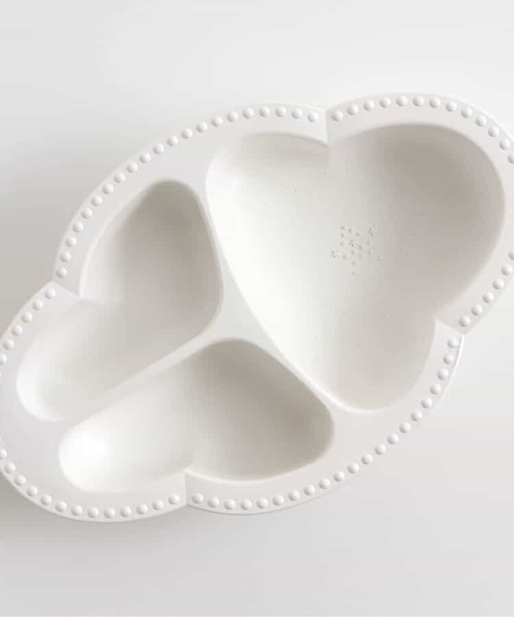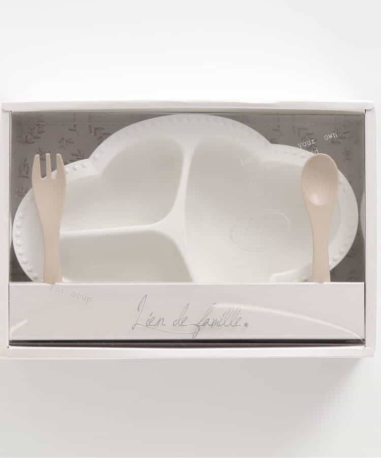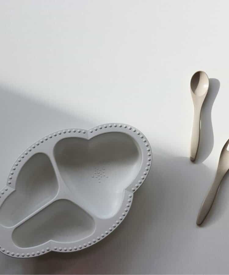 コンセプトは「大人と一緒に囲む食卓」。インテリアに馴染む、Lienならではの大人なデザインの食器。食べやすさにもこだわったつくりで、食材をすりつぶすことができる突起付き。自然素材でエコにも配慮。