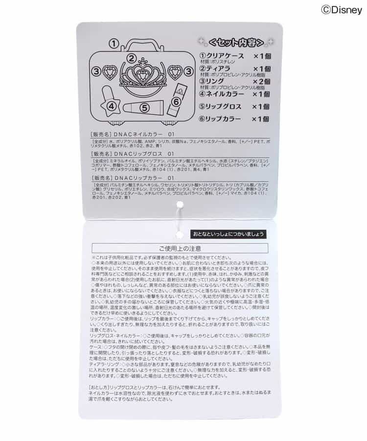 クリアケース、ティアラ、リング×2個、ネイルカラー、リップグロス、リップカラー