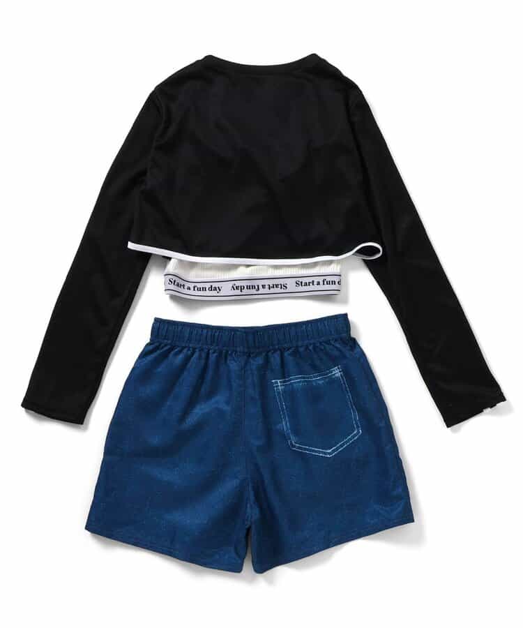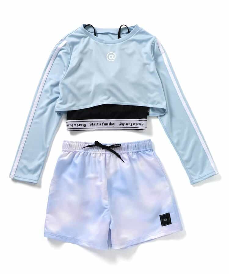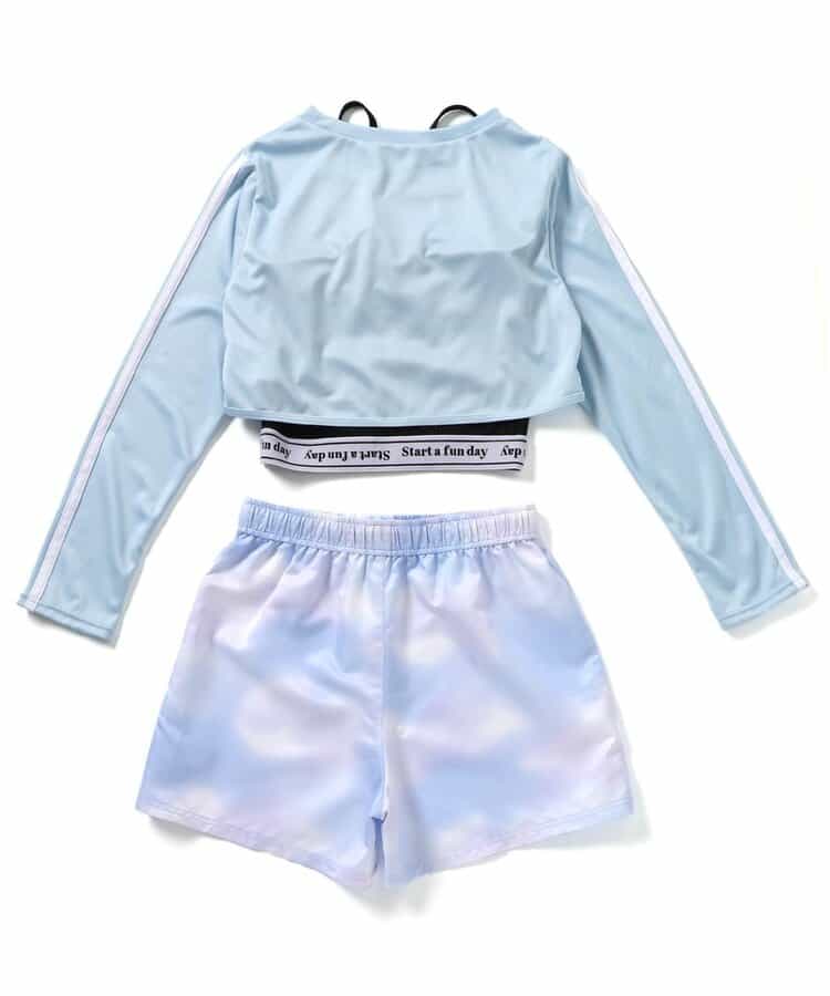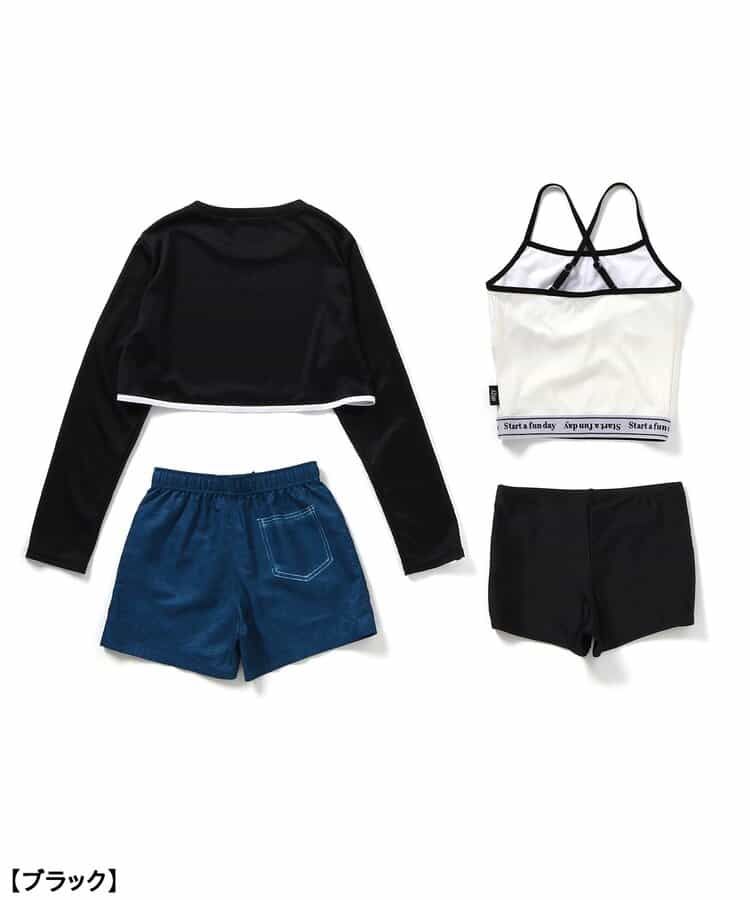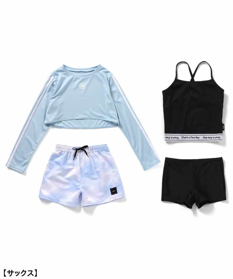 長袖のクロップドラッシュガードにバッククロスキャミ、ハーフパンツ、インナーパンツの4Pセット水着★