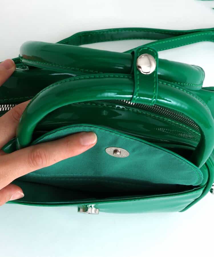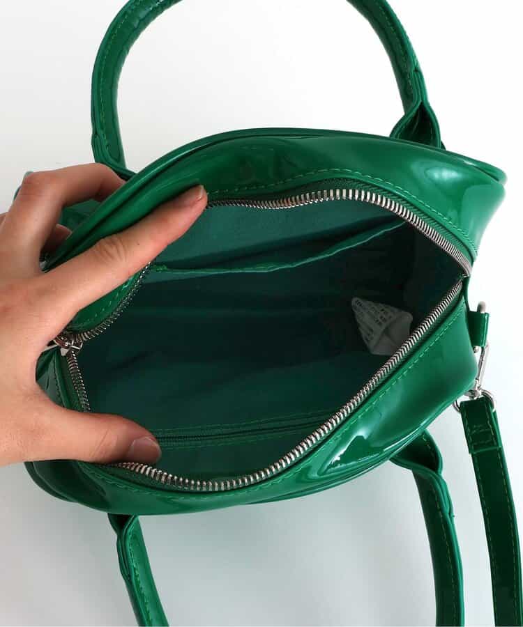 コロンとした形でエナメル素材だから持つだけで上品な雰囲気に^^外側と内側どちらにもポケットがあってショルダーベルトも付いているのでとっても便利♪ショッピングやお出掛けに★販売元:(株)リボーンカンパニー