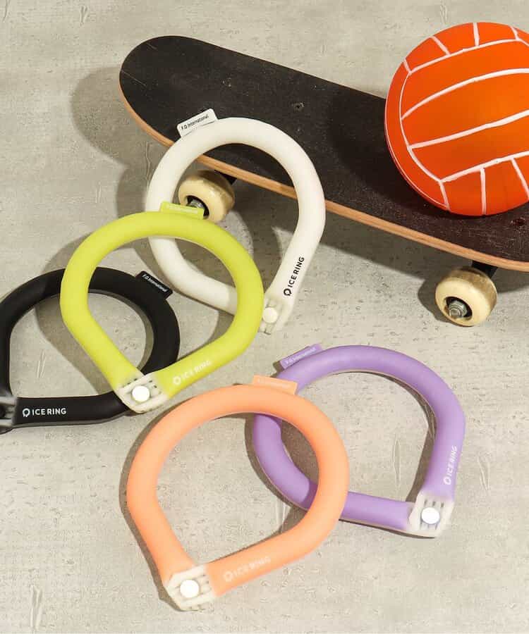 「ICE RING_アイスリング」は28℃以下で自然に凍結し、屋外屋内どこでも繰り返しお使いいただけるアイテムです。