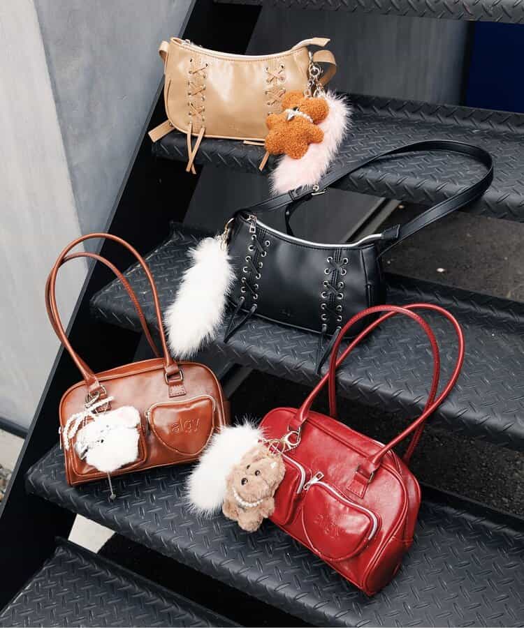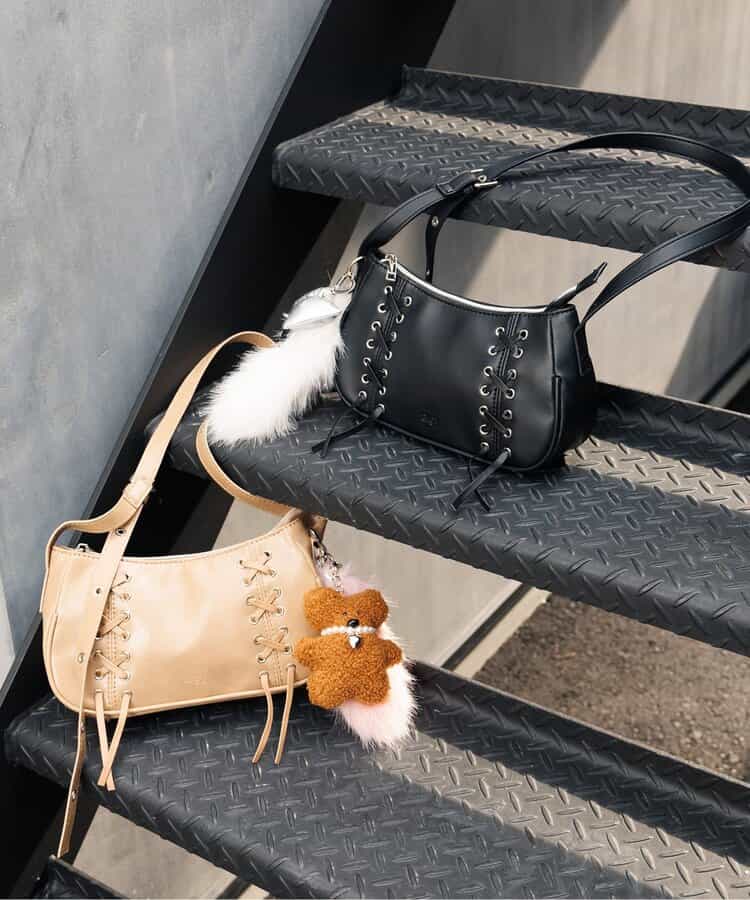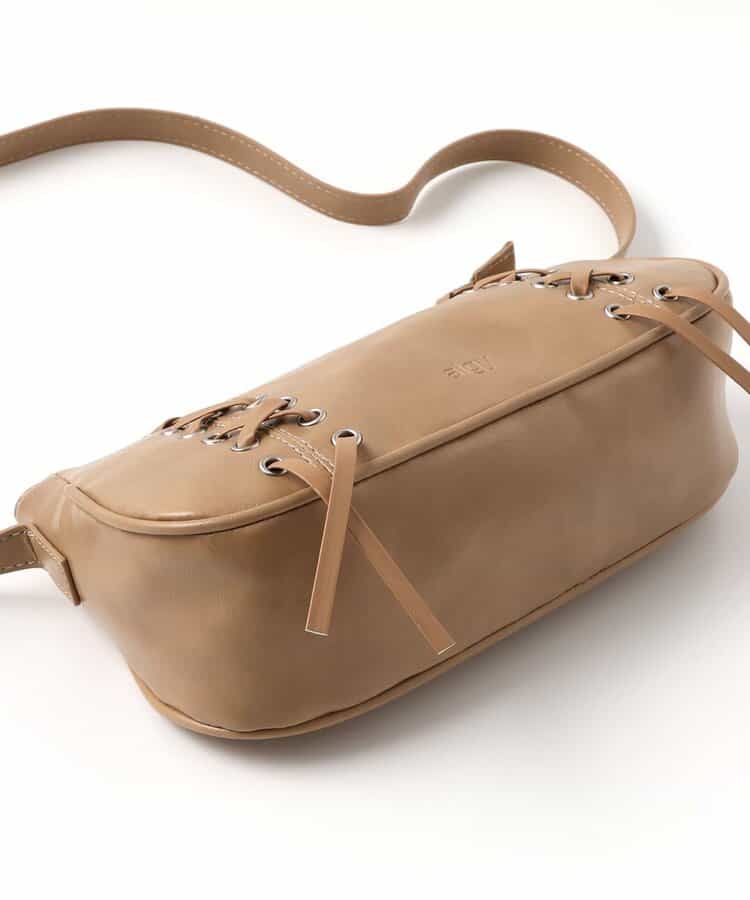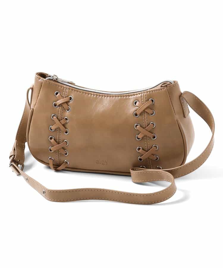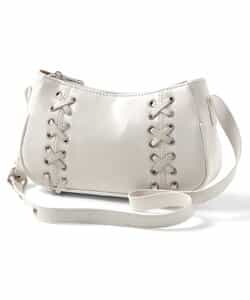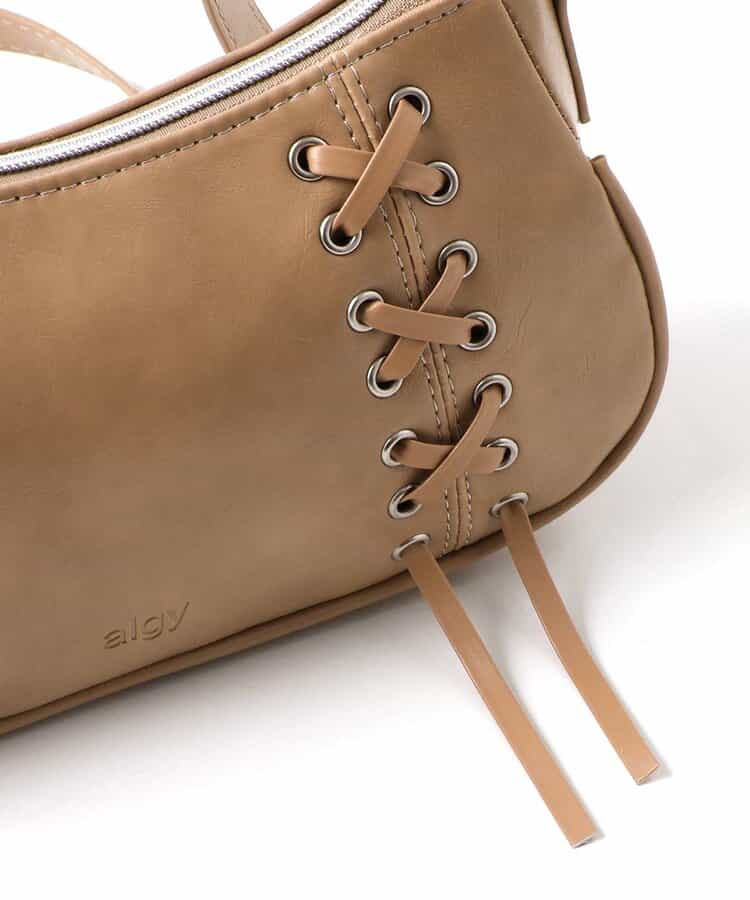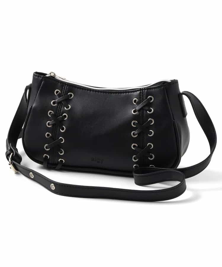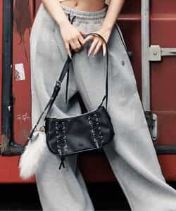 【7/3(木)21:00~販売】ダブルレースアップが目を惹くデザインのショルダーバッグ。ショルダーを短くして大人っぽく肩掛けがおすすめ◎ショルダーのアイレットもポイントになるこだわりデザイン★【サイズ】商品(mm):(幅)240×(高さ)150×(奥行)70