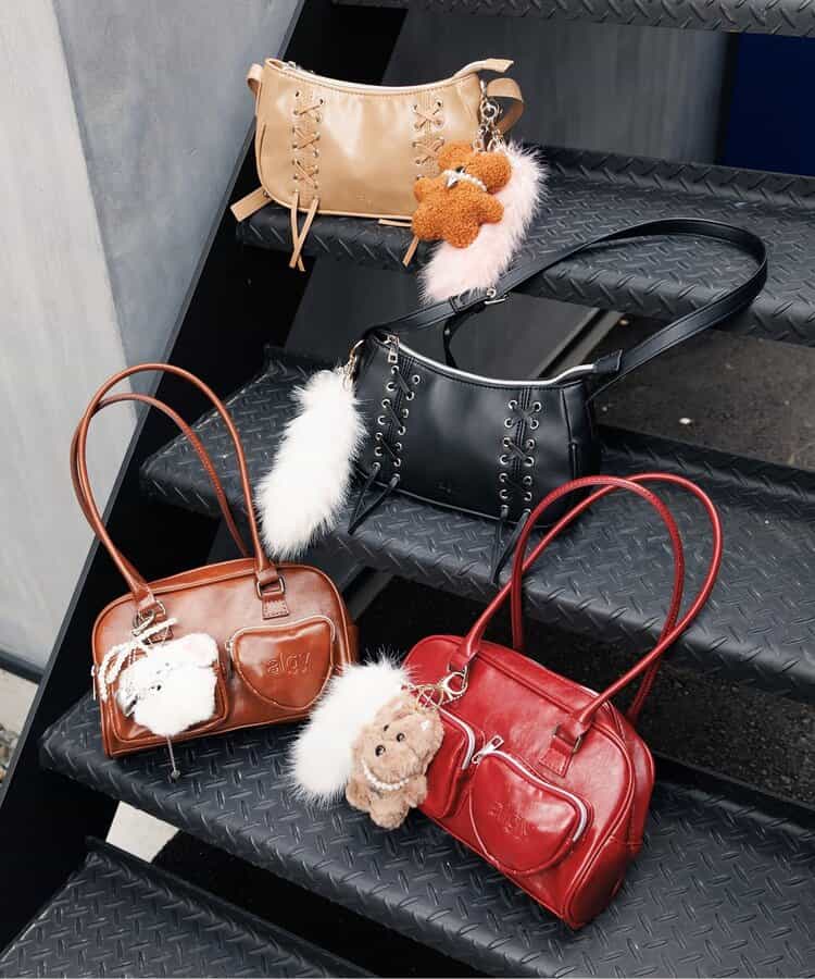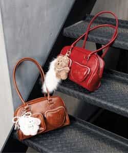 【7/3(木)21:00~販売】"ハートにキュン"なwポケットミニボストン。見た目以上の収納力が魅力!ハート型のポケットはデザインの可愛さだけでなく小物を分けて収納できる実用性も◎お出かけに大活躍★【サイズ】商品(mm):(幅)250×(高さ)145×(奥行)70