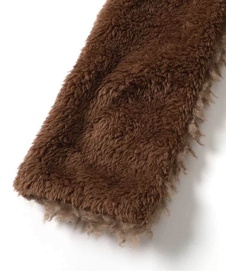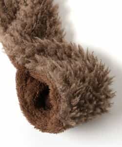 長い毛が抜けたり、着用中組み合わせた衣服や持ち物等に付着する事がありますが、素材の特性上やむを得ません。
