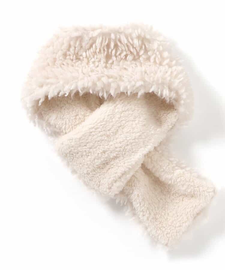 通し穴にマフラーの片側を差し込む仕様で簡単に着脱できるネックウォーマー。