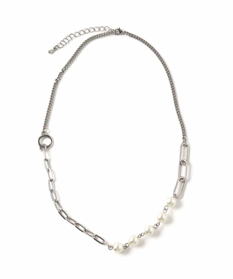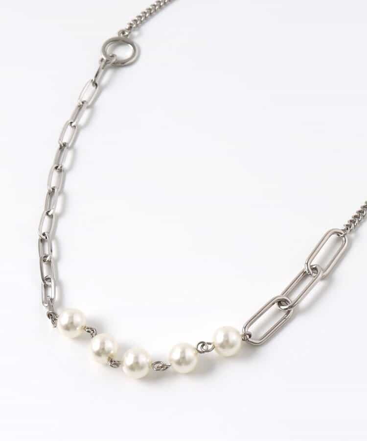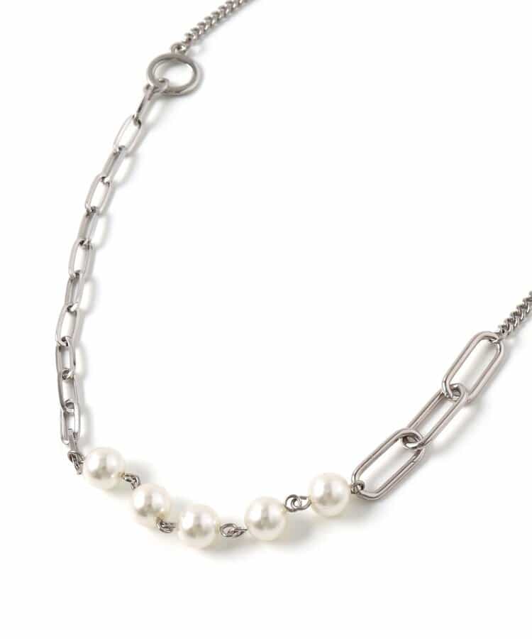 【7/23(水)21:00~販売】シルバーのチェーンとホワイトパールを組み合わせた、洗練されたネックレス。甘すぎずクールな抜け感が共存する、魅力的なデザイン★【サイズ】商品(mm):(ネックレス全長)490