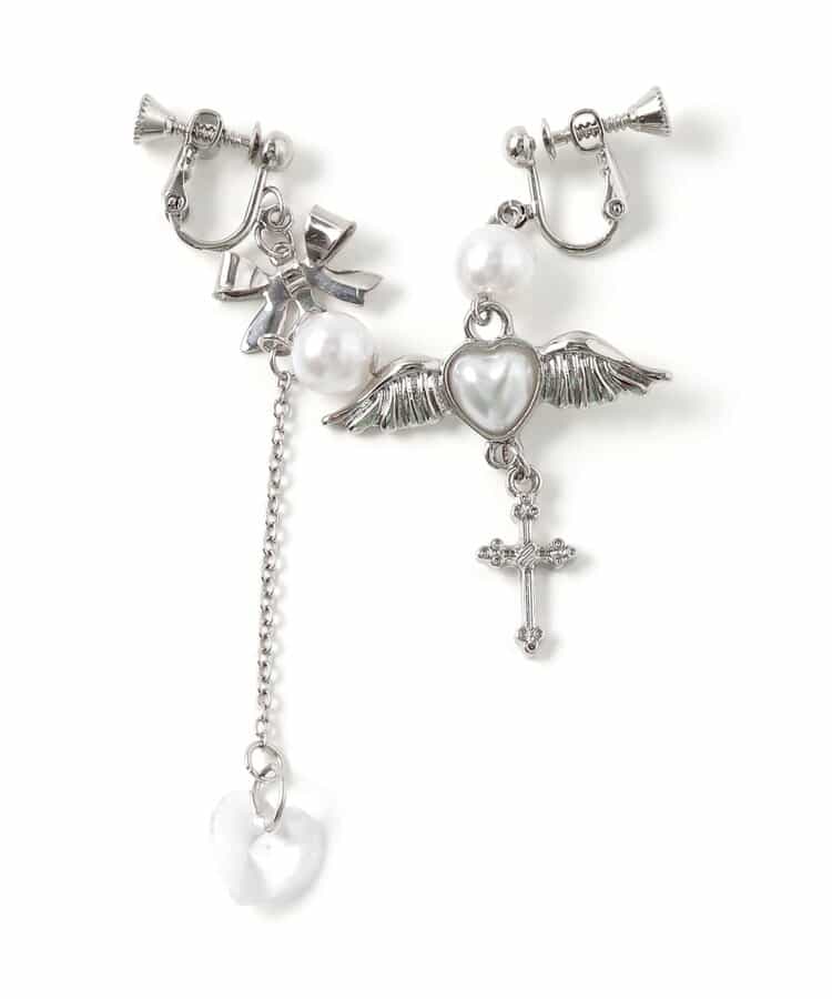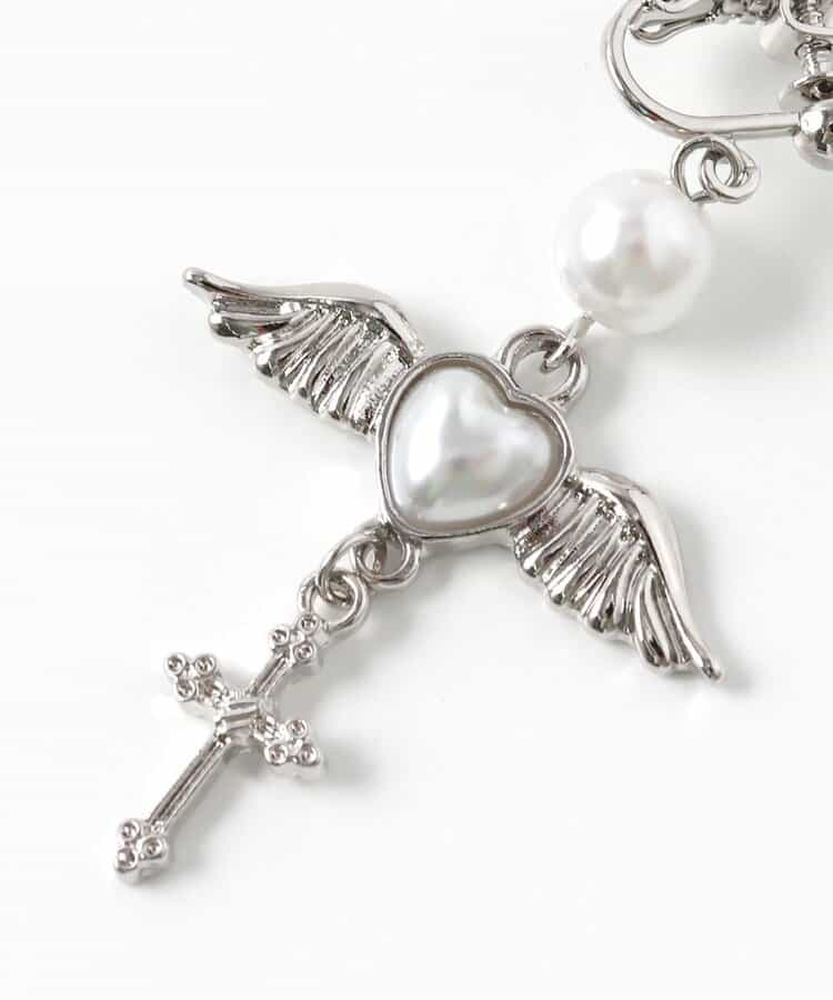 【7/23(水)21:00~販売】天使の羽がついたハートモチーフにクロスデザインをプラス。クリア素材のハートパーツとリボンがさりげなく可愛さを演出してくれる★【サイズ】商品(mm):(幅)35×(高さ)80×(奥行)10