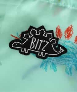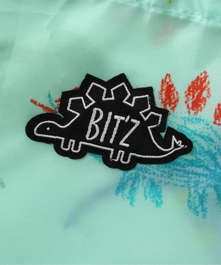 BIT'Z(ビッツ)のレイングッズ「クレヨンお絵描き恐竜柄プレイウェア」は、POPでカラフルなデザインが人気!雨の日もBIT'Zのキャラクターの世界観を楽しもう!