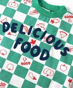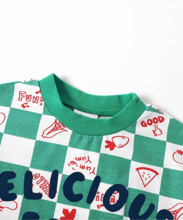 BIT'Z(ビッツ)の半袖Tシャツ「おっきなフルーツ柄&ベジタブルブロックチェック柄Tシャツ」は、POPでカラフルなデザインが人気。楽しいアートとキャラクターでBIT'Zの世界観を楽しもう!