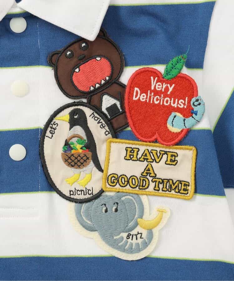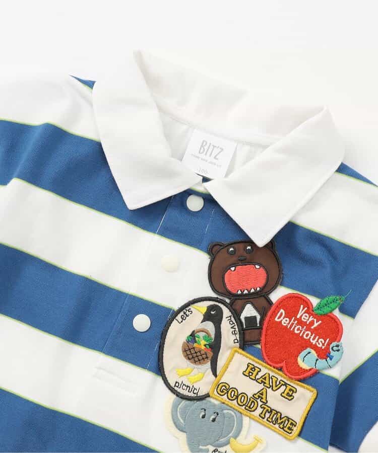 BIT'Z(ビッツ)の半袖Tシャツ「沢山のワッペン付きボーダーポロシャツ」は、POPでカラフルなデザインが人気。楽しいアートとキャラクターでBIT'Zの世界観を楽しもう!
