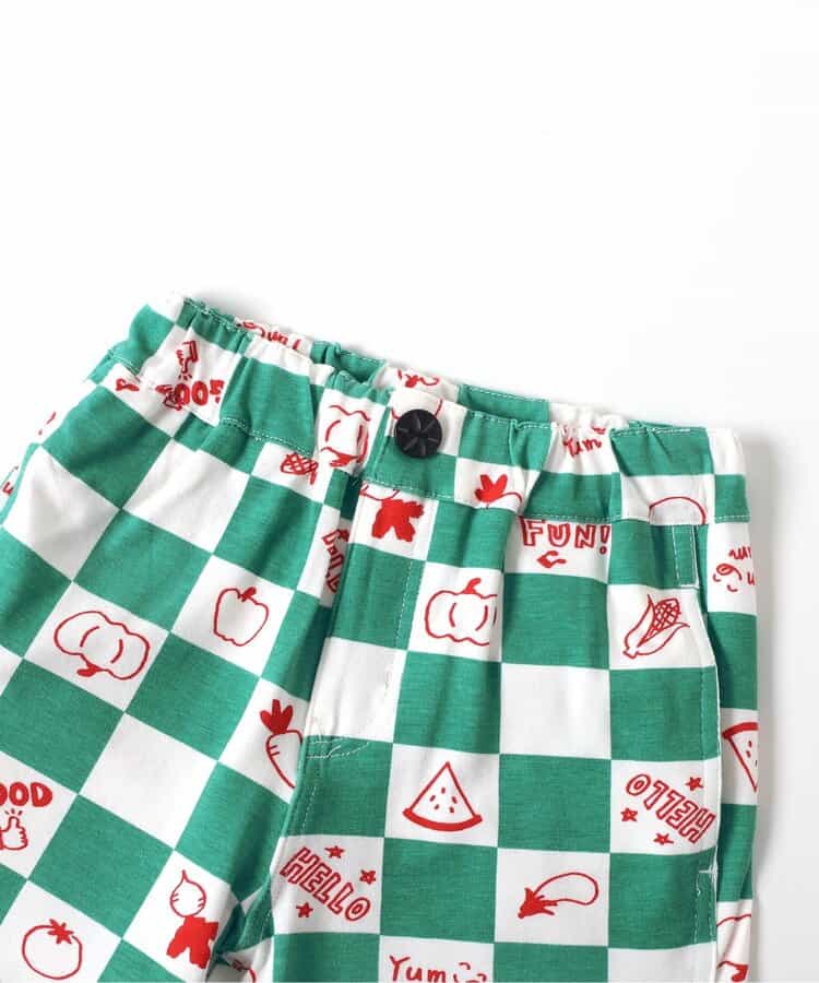 BIT'Z(ビッツ)のパンツ「おっきなフルーツ柄&ベジタブルブロックチェック柄パンツ」は、POPでカラフルなデザインが人気。楽しいアートとキャラクターでBIT'Zの世界観を楽しもう!