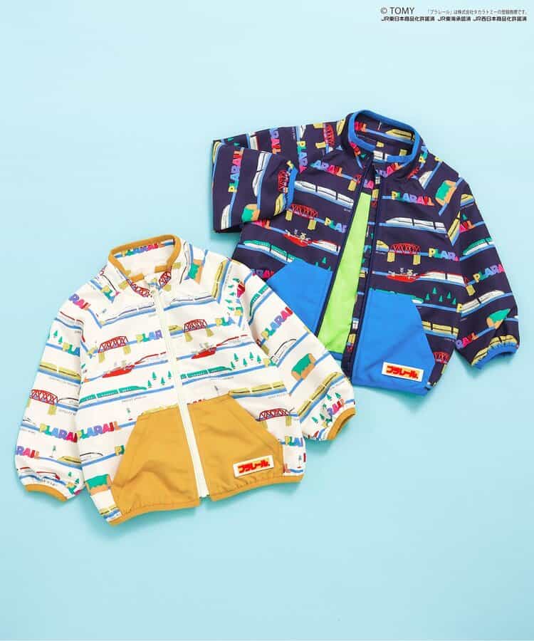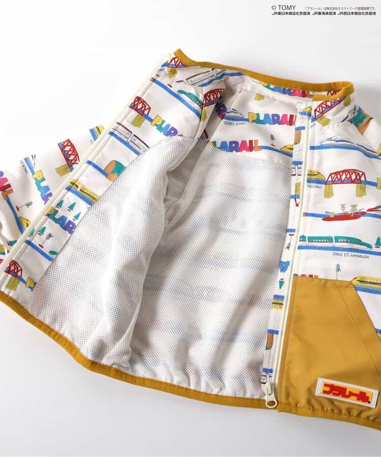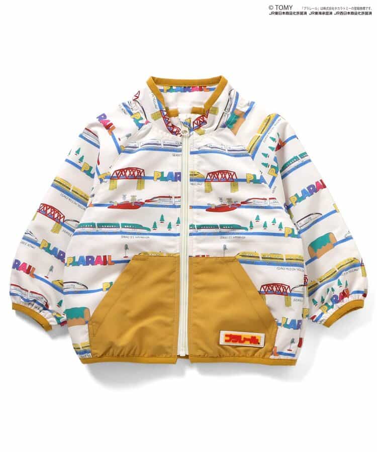 【8/20(水)正午~販売】【プラレール】ウィンドブレーカー電車好きにはたまらない!『プラレール』の世界がまるごと詰まった、総柄プリントのウィンドブレーカーが登場!人気の車両やレールがにぎやかに描かれた手描き風デザインで、着るだけでワクワク気分に♪やわらかく肌ざわりのいいピーチ起毛タフタ素材に、裏地はメッシュ仕様でムレにくく、季節の変わり目にもぴったり。前身頃には『プラレール』のシリコンネーム付きで、こだわりのディテールも◎サイズは80〜120cm展開。通園・通学の羽織りや、電車イベントのおともにもおすすめです!