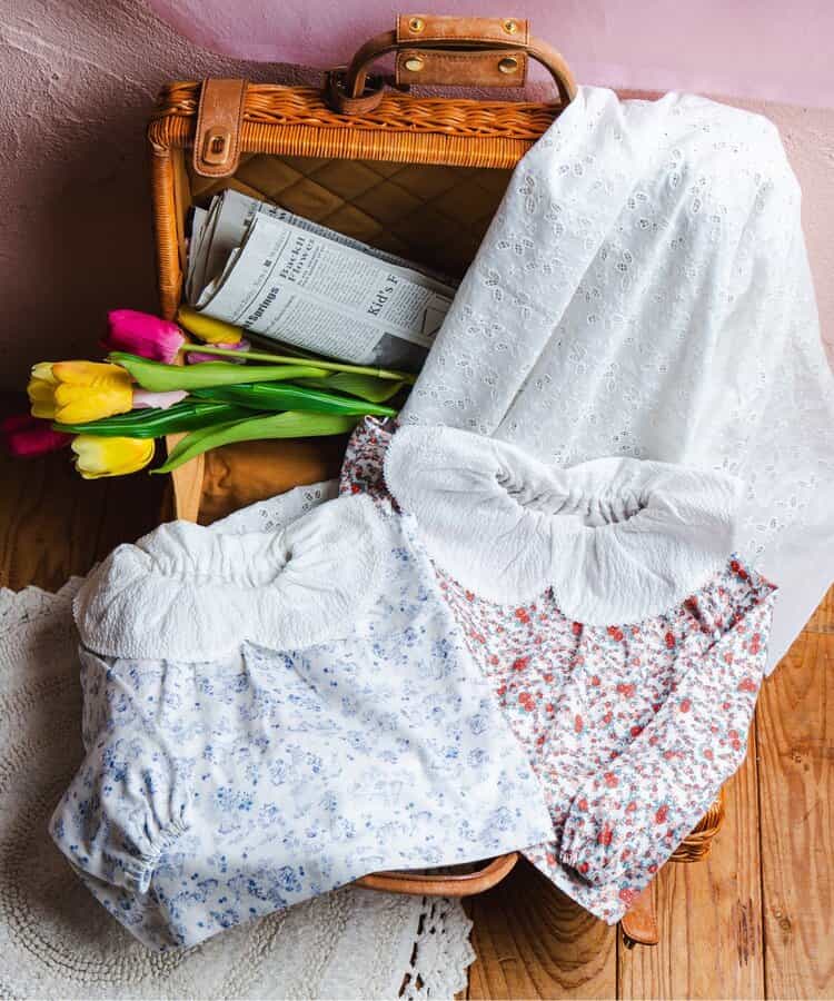 衿には表面感のあるサッカー素材を使用し、端にはピーコットミシンを施して上品に仕上げました。