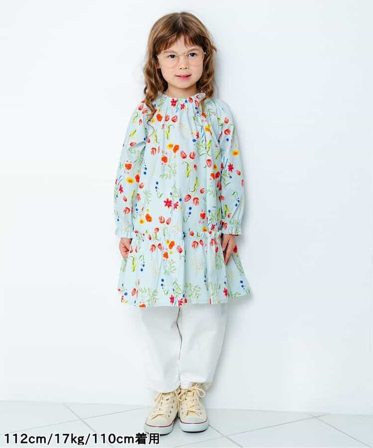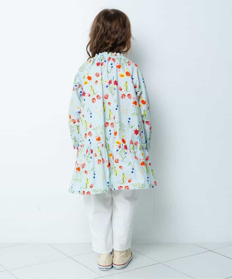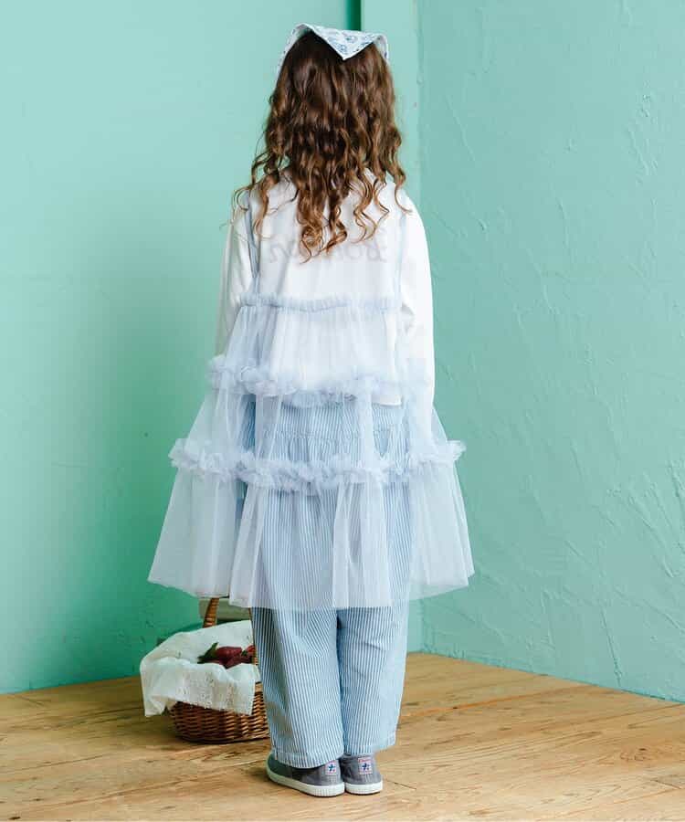 前後ヨークをV切り替えにし、共生地のリボンを後ろにあしらいました。