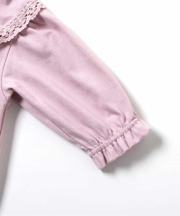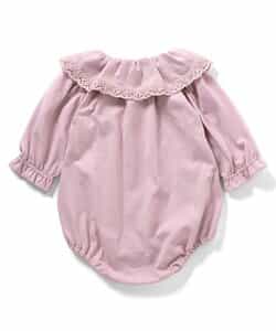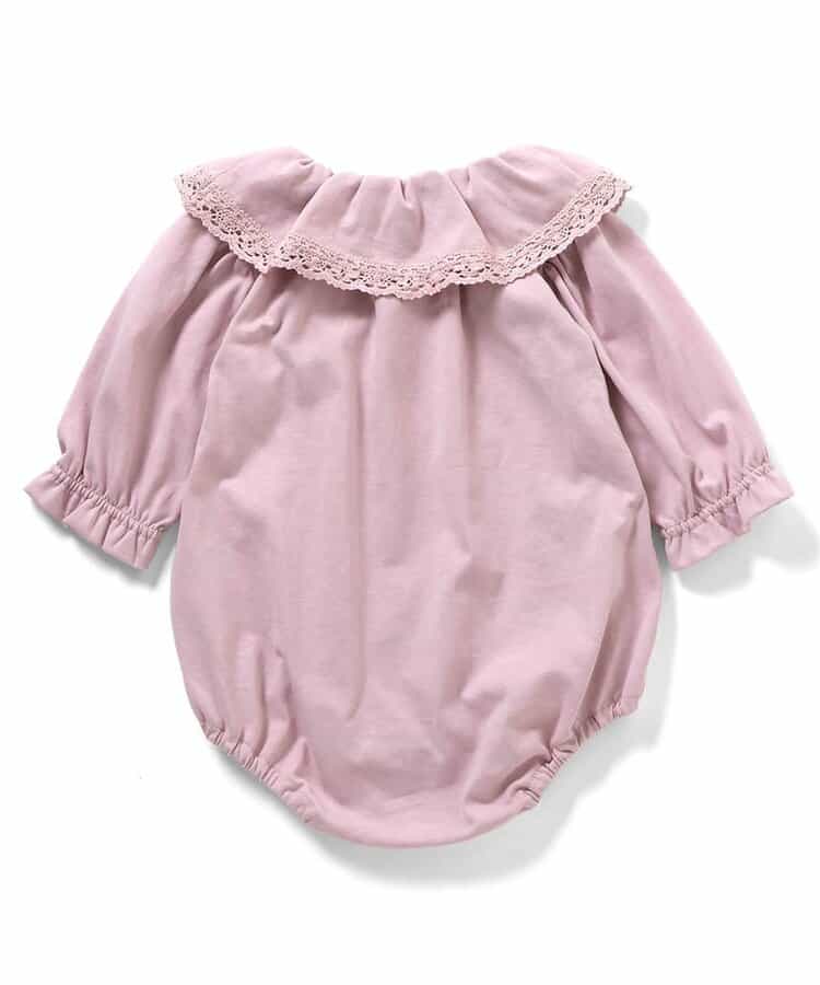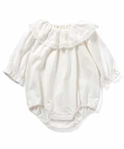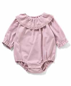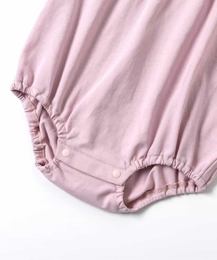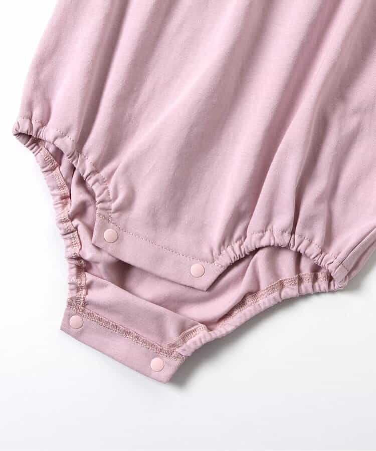 【12/10(水)お昼12時~販売予定】トドラーのピエロカラーTシャツとおそろいのベビー用ボディスーツ。袖口のベルデザインがやさしい印象をプラス。色展開はオフホワイトとピンクの2色。股開きスナップボタン仕様で着脱も簡単。ココデニムサロペットやジャンスカとのコーディネートも楽しめる1枚です。