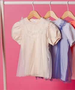 Boribon(ボリボン)の半袖Tシャツ「チュールジョインTシャツ」は、ナチュラルで華やかさもあるデザインが魅力のアイテム。<お取り扱いのご注意>