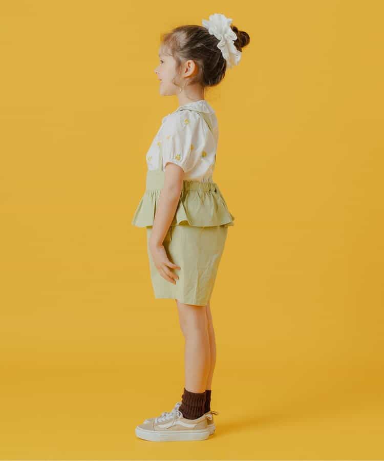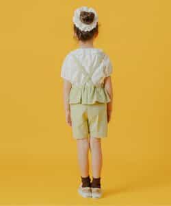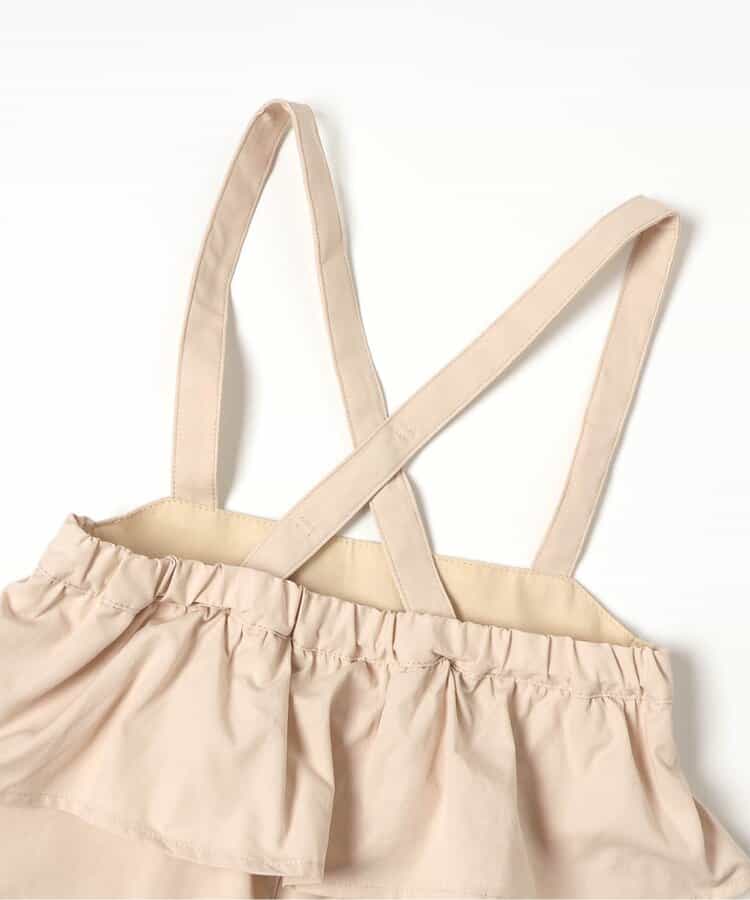 【2/18(水)お昼12時~販売】Boribon(ボリボン)のパンツ「ウエストフリルショートサロペット」は、ナチュラルで華やかさもあるデザインが魅力のアイテム。