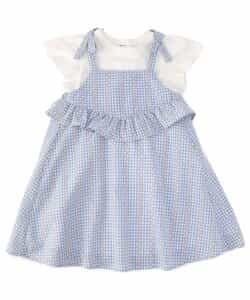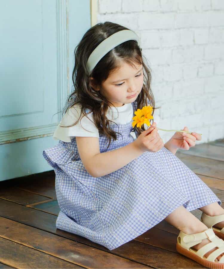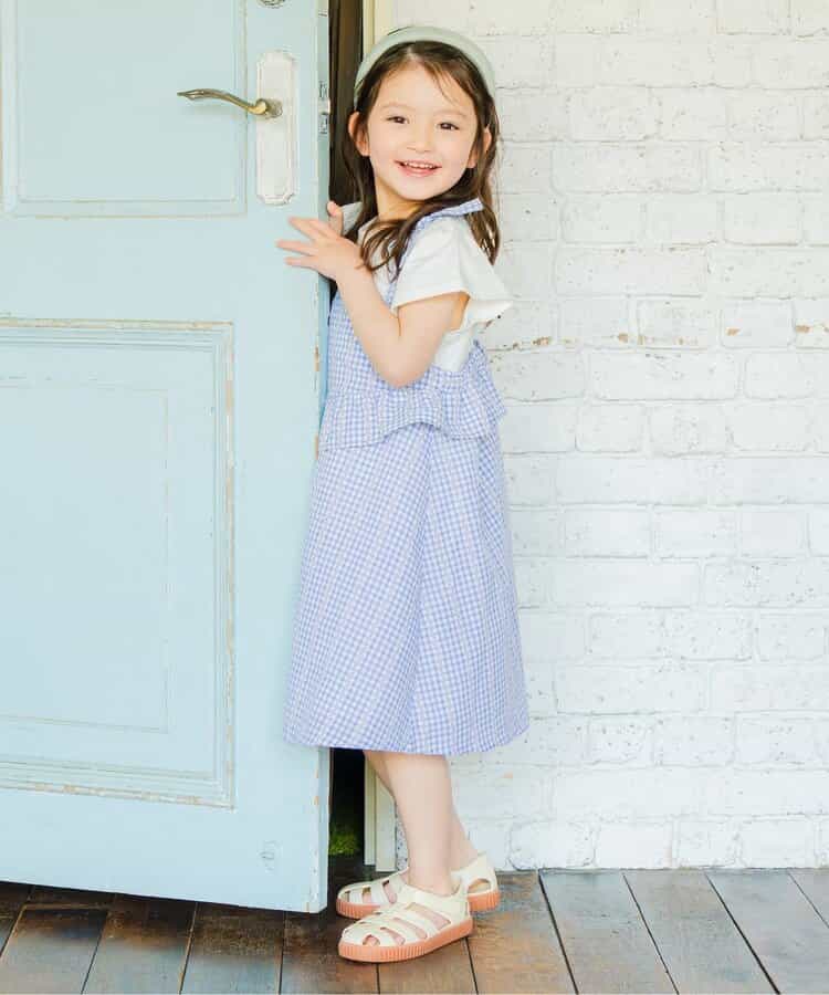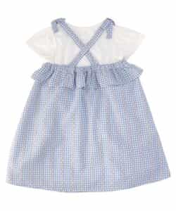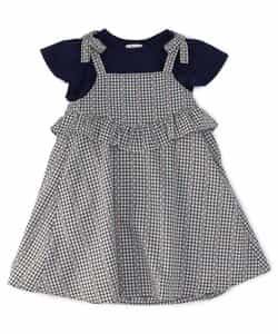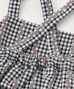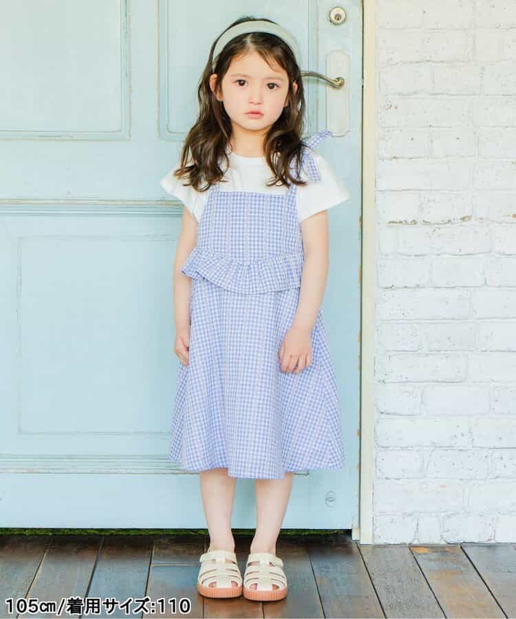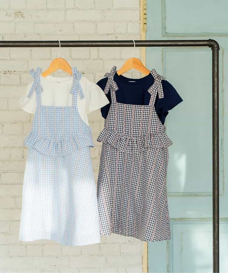 ※販売日は前後する可能性がございます。チェック柄のキャミソールワンピースとトップスがセットになったアイテム。ワンピースはチェック柄とウエスト部分のフリルがポイント。ふんわりとしたシルエットが軽やかな印象に。肩紐にリボンがついていて、こだわりがつまったアイテムです。トップスはシンプルなデザインながら、袖のフリルがさりげなくかわいい。ワンピースと合わせるのはもちろん、単品使いもおすすめです。普段のお出かけにもぴったりなアイテムです。