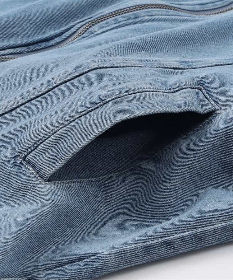 この商品はユーズド感を出す為、製品洗い・製品染め・ブリーチ(脱色)・生地切れ・糸切れ等の2次加工を施しております。
