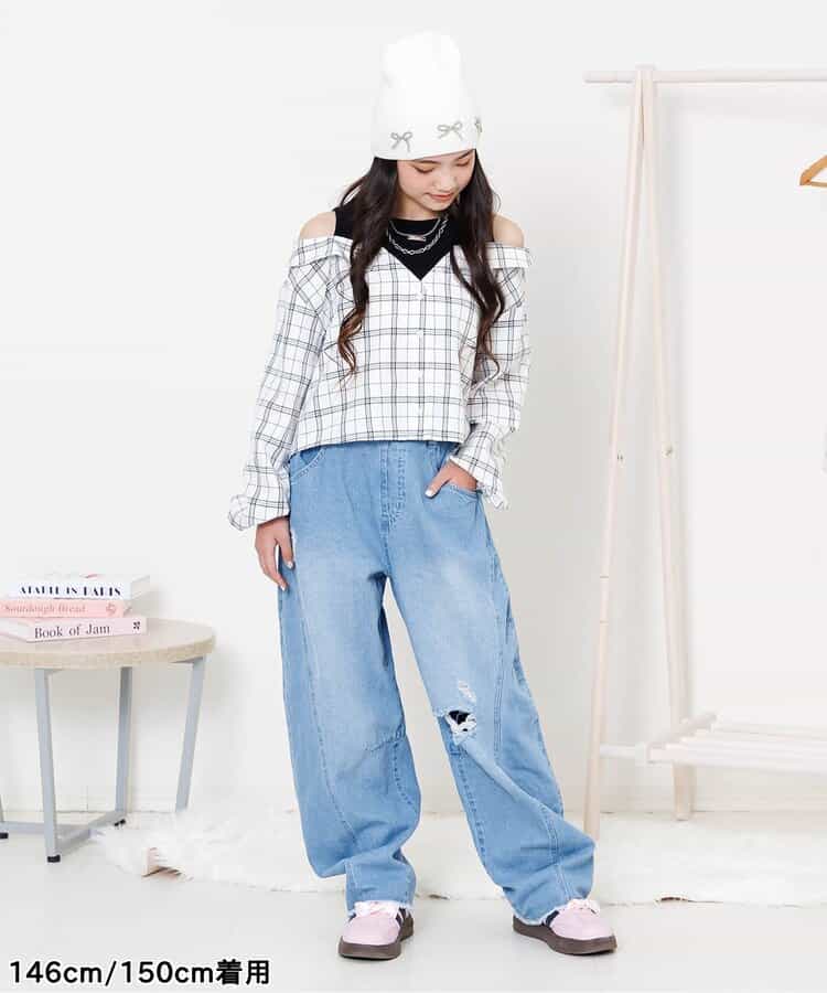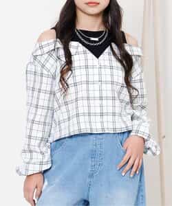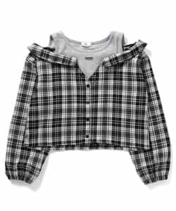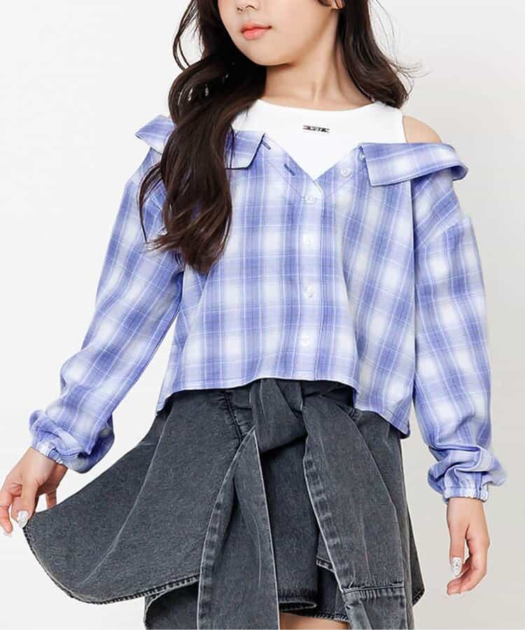 【1/21(水)21:00~販売】algy(アルジー)のシャツ・ブラウス「ドッキングチェックシャツ」。1枚でコーデの主役になる格上げアイテム◎【 algy ーアルジー ー 】『おしゃれを楽しみたいティーンズのリアルクローズ』着たい 欲しい トレンド・・・全部そろう小中学生向けブランドです。
