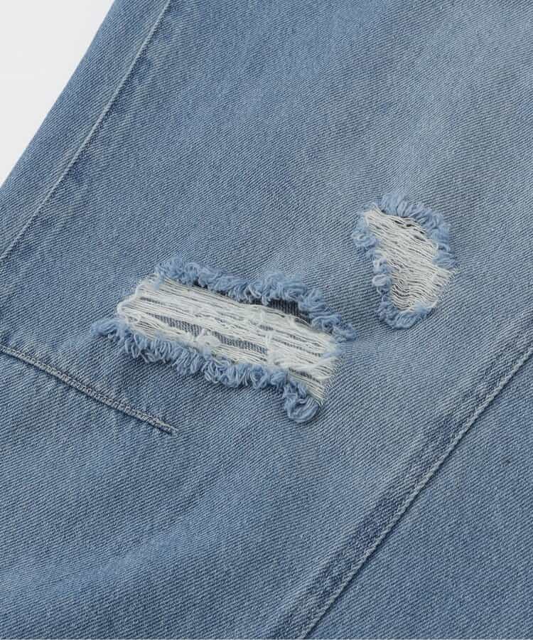 この商品はユーズド感を出す為、製品洗い・製品染め・ブリーチ(脱色)・生地切れ・糸切れ等の2次加工を施しております。