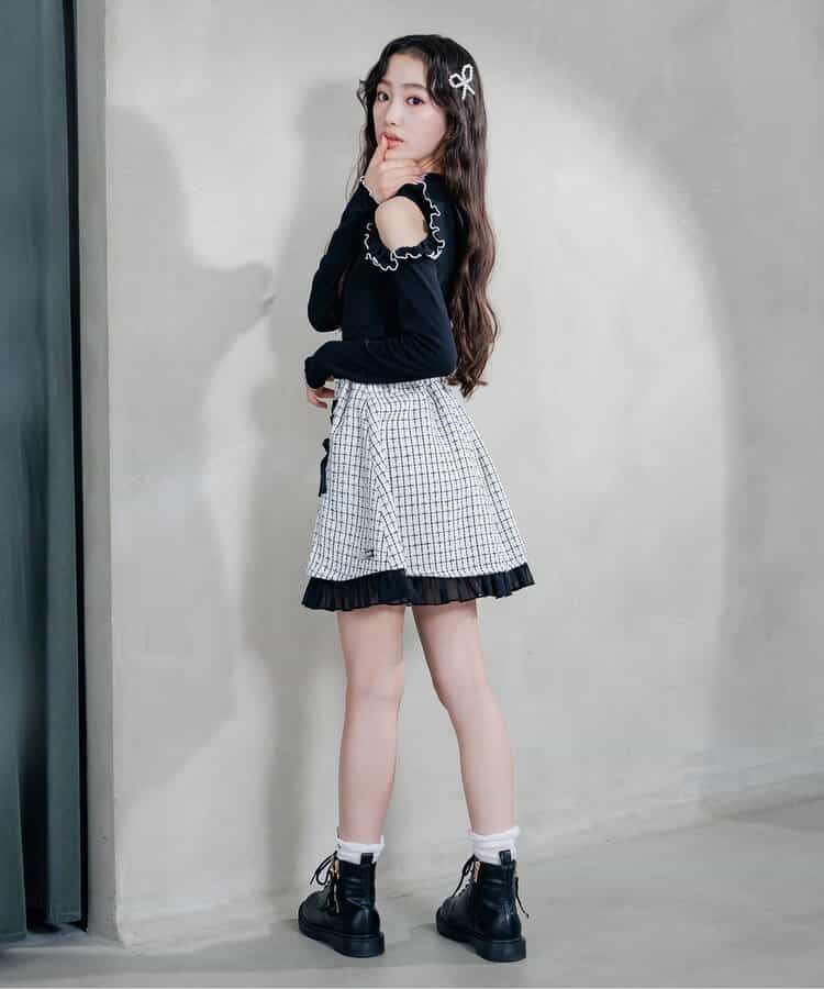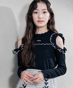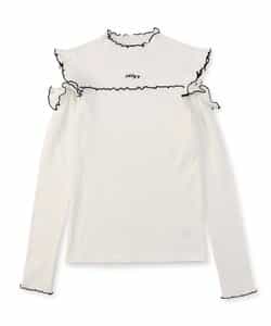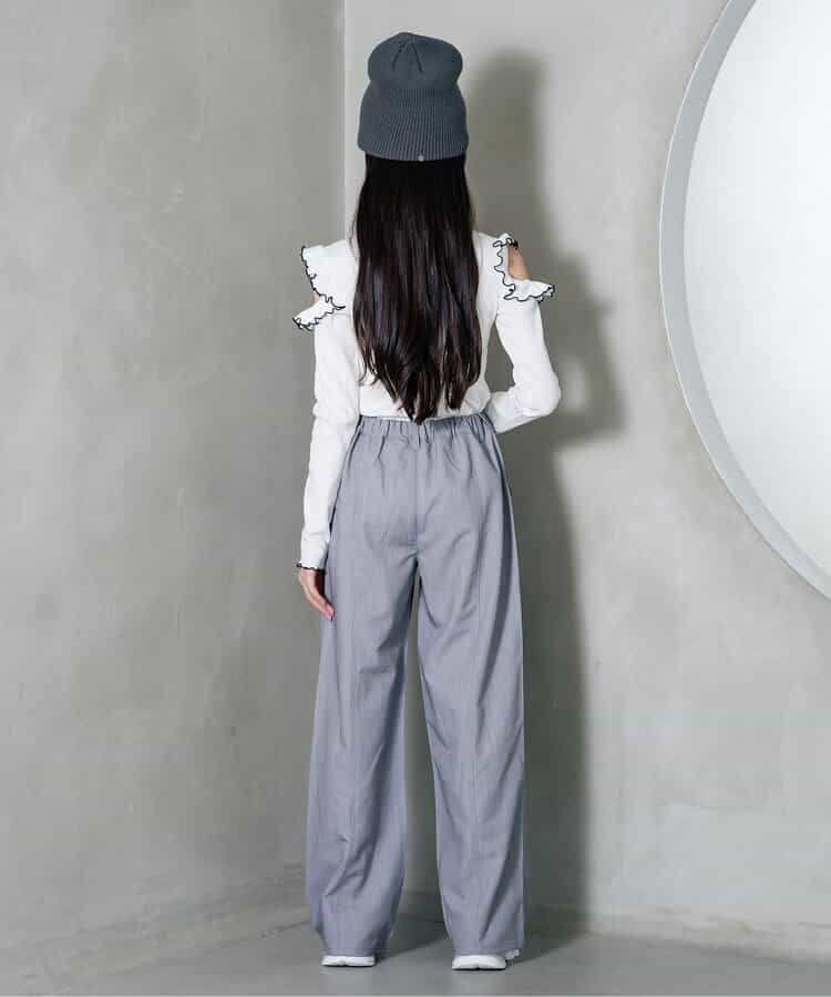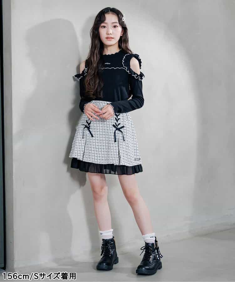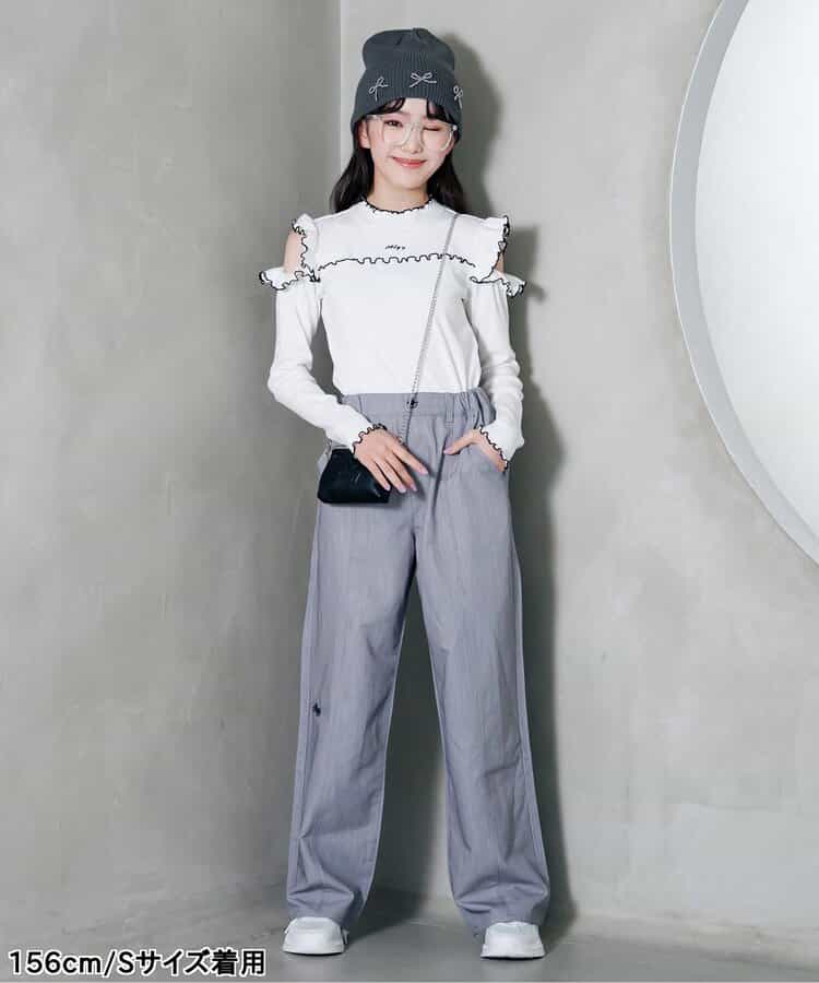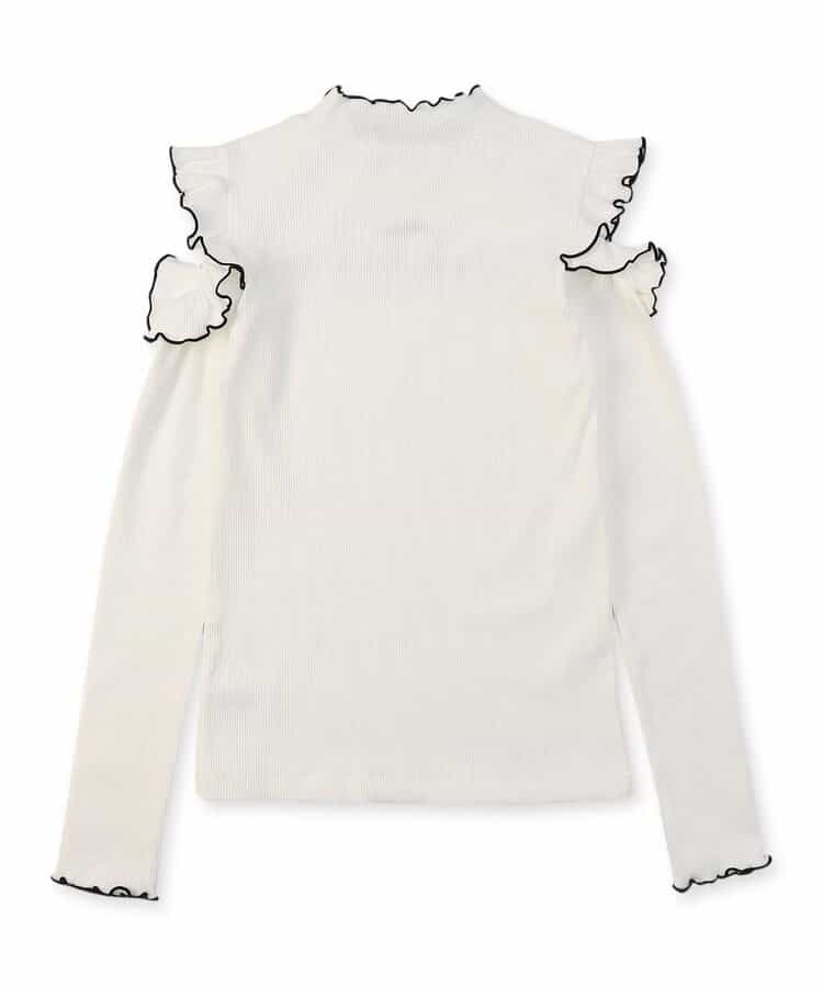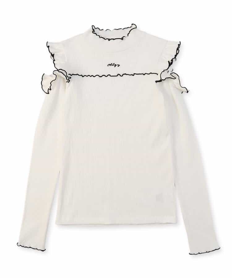メロウフリル、肩あきデザインがガーリーコーデのインナーに大活躍するアイテム◎おすすめコーデアイテムはコチラ!!>>『G225015』オールインワン風フリルセットアップ