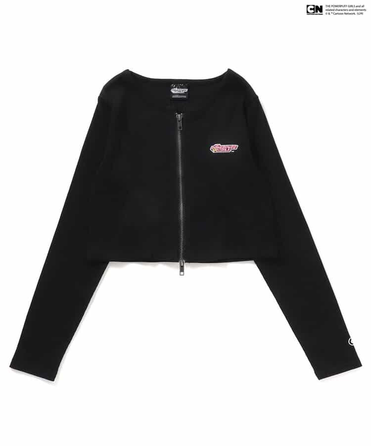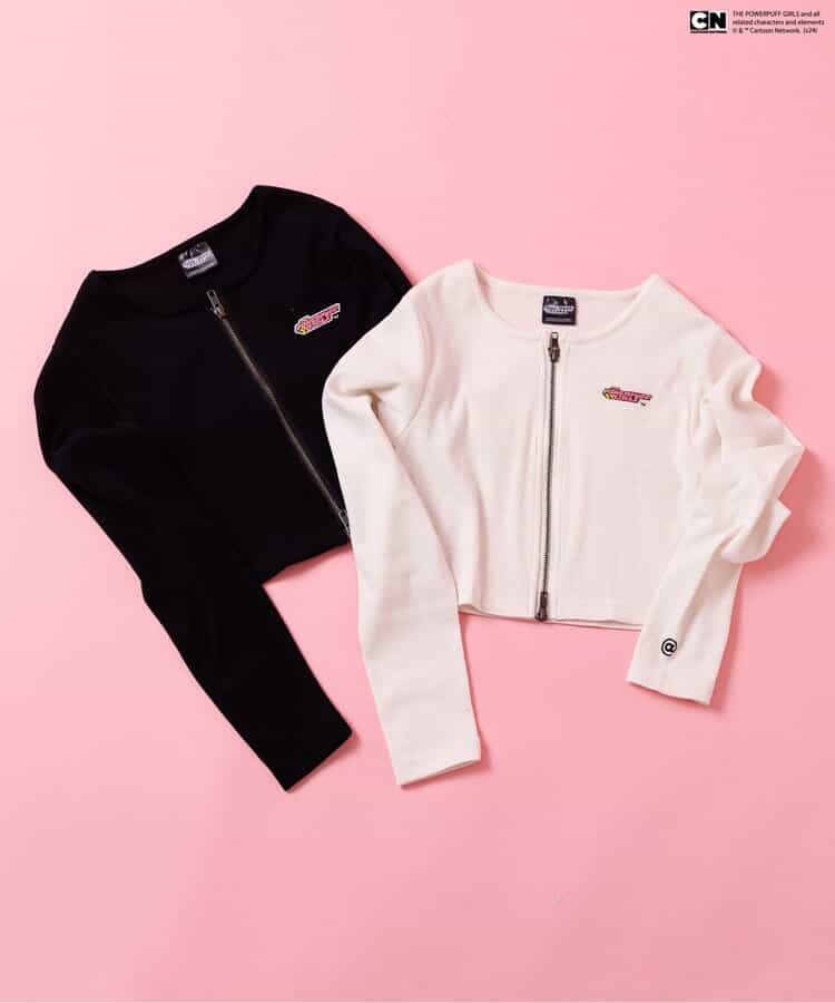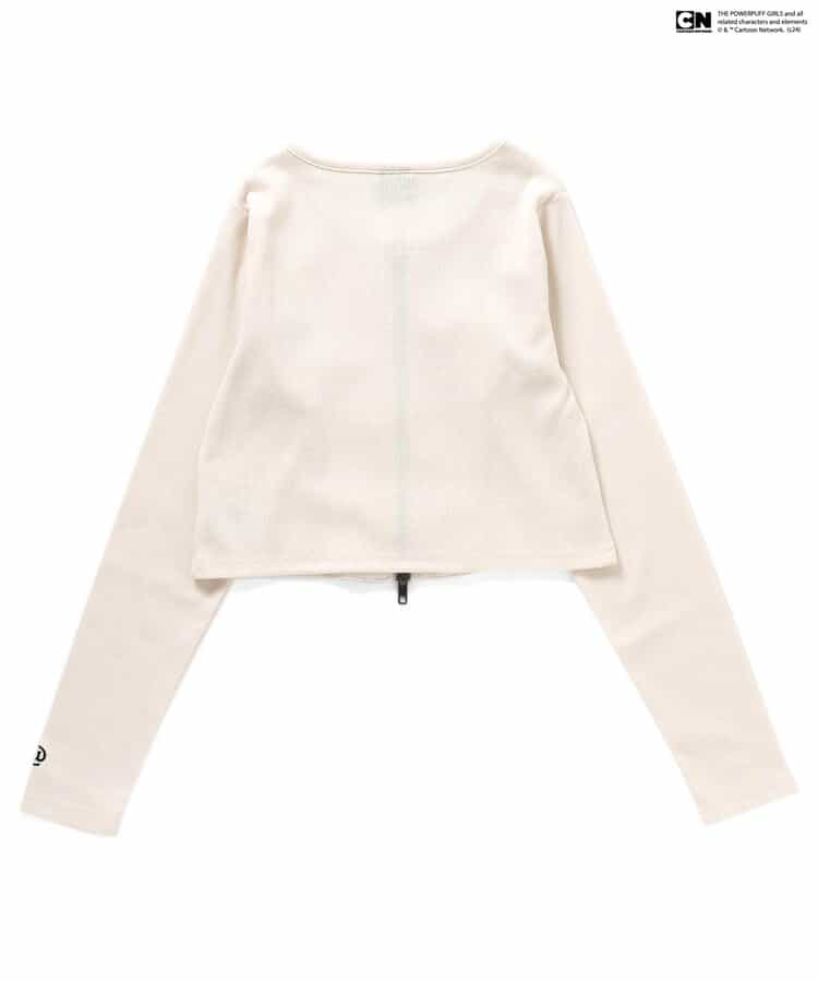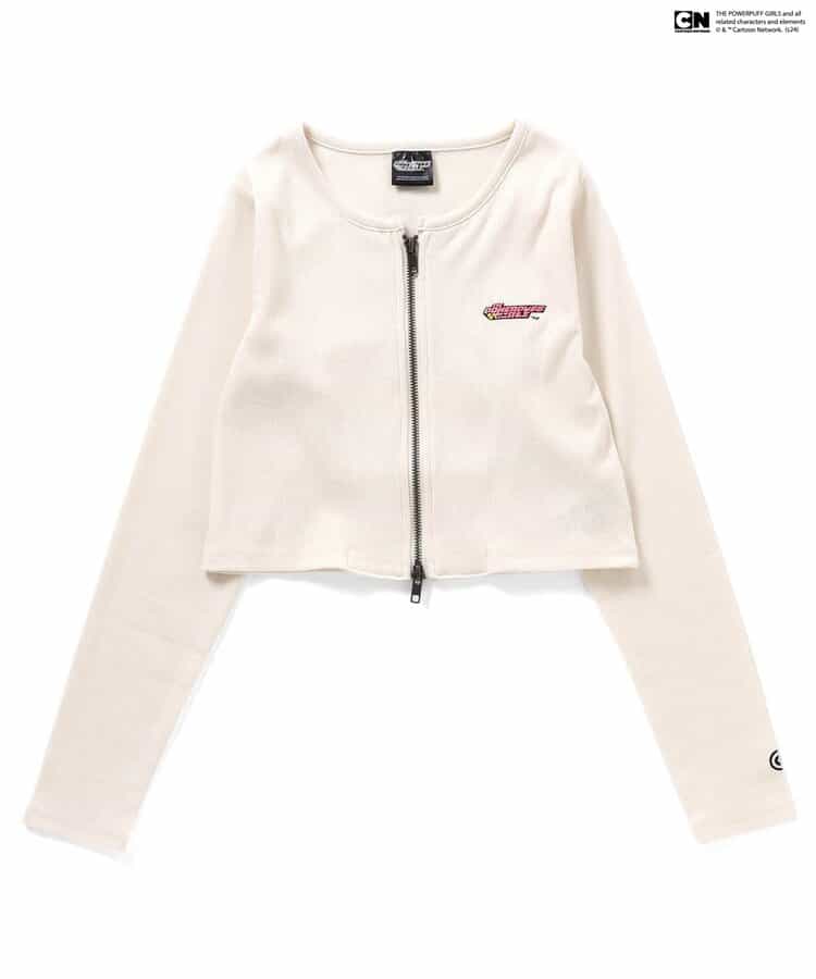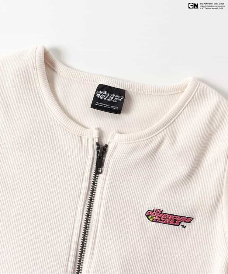 【THE POWERPUFF GIRLS コラボ】「パワーパフ ガールズ」ロゴがポイントになる着回し力バツグンなダブルジップロンTが登場!使いやすいブラックとアイボリーの2色展開。ジップを開けて、さりげない肌見せも楽しめます♪すっきりとしたシルエットなので、ボリュームのあるボトムスとのコーデもおすすめです★