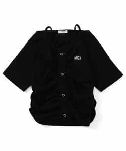 フロントのフェイクボタンデザインや、シャーリング、肩ストラップと