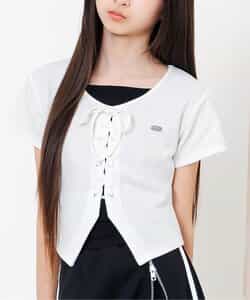 algy(アルジー)の半袖Tシャツ「レースアップドッキングT」。
