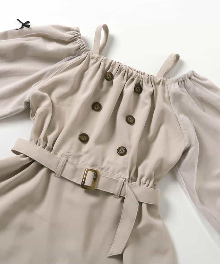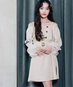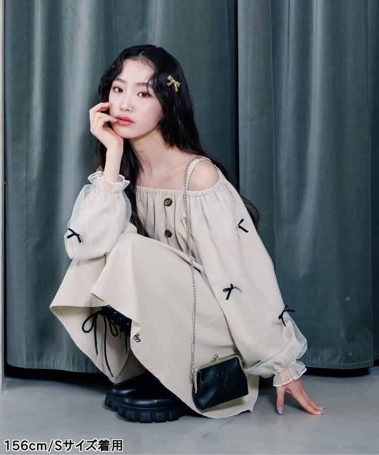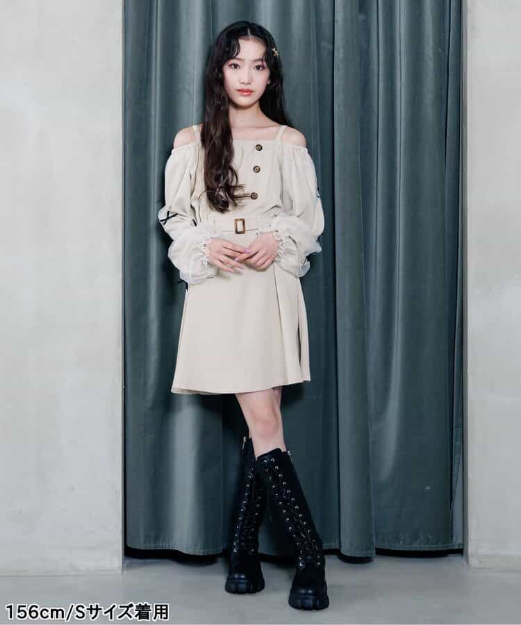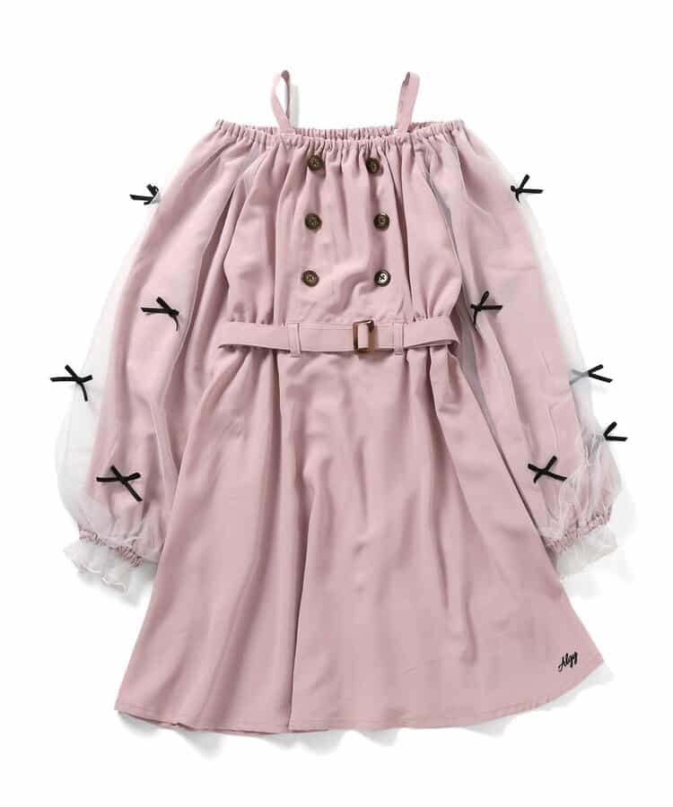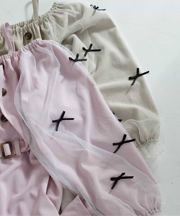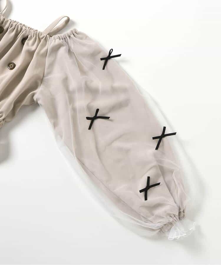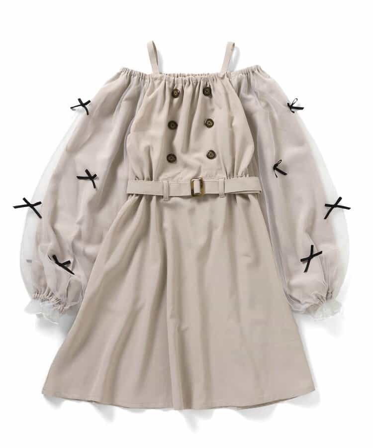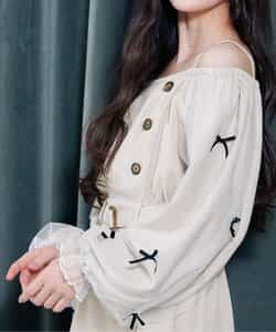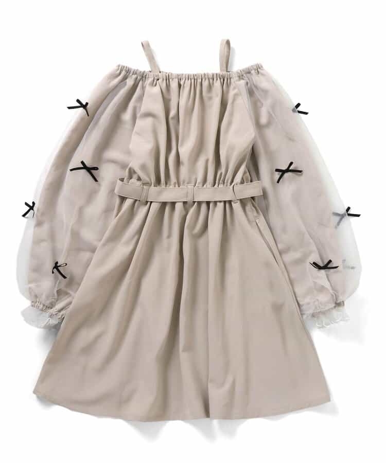 ふんわり美シルエットのワンピース。チュール重ねの袖にリボンが付いた大人っぽガーリーな一枚★ロングブーツと合わせたスタイリングがおすすめです◎
