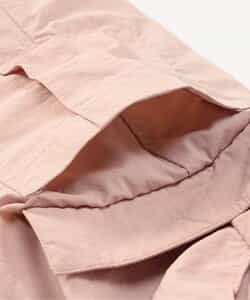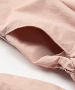 40℃を上限に洗濯機で洗濯、デリケートアイテムモード、ネット使用、漂白剤を使用禁止、色物は同系の色と一緒に、洗濯後直ちに取出し、タンブル乾燥不可、日陰で吊り干し、低温でアイロン、商業ドライクリーニング不可
