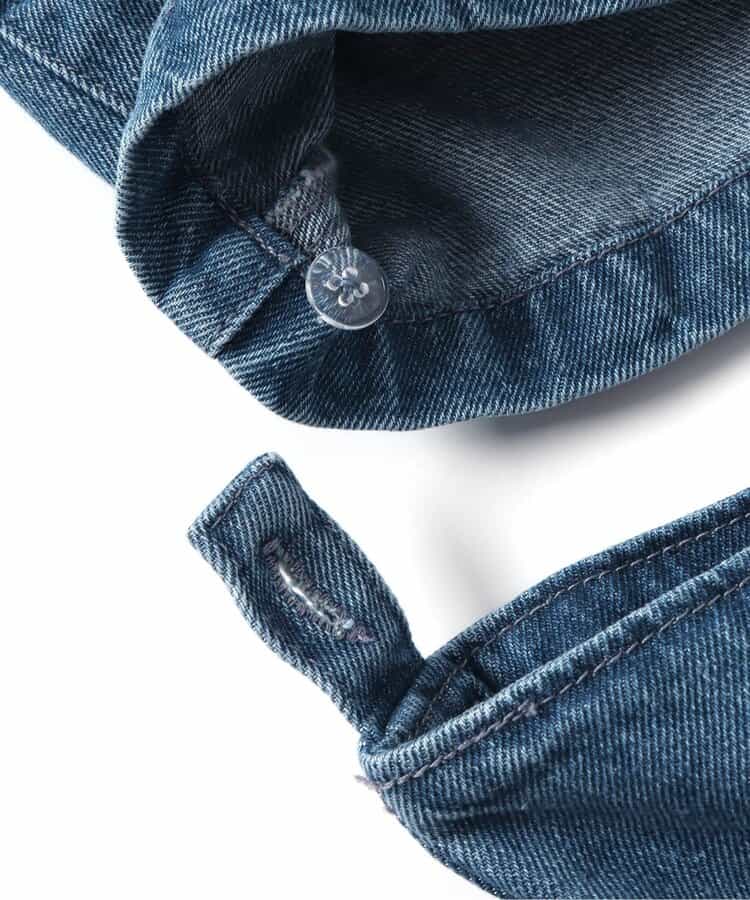 この商品はユーズド感を出す為、製品洗い・製品染め・ブリーチ(脱色)・生地切れ・糸切れ等の2次加工を施しております。