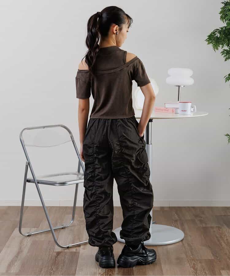 algy(アルジー)のパンツ「シャイニーギャザーカーゴパンツ」は、手頃な価格とシルエットのきれいさが人気!