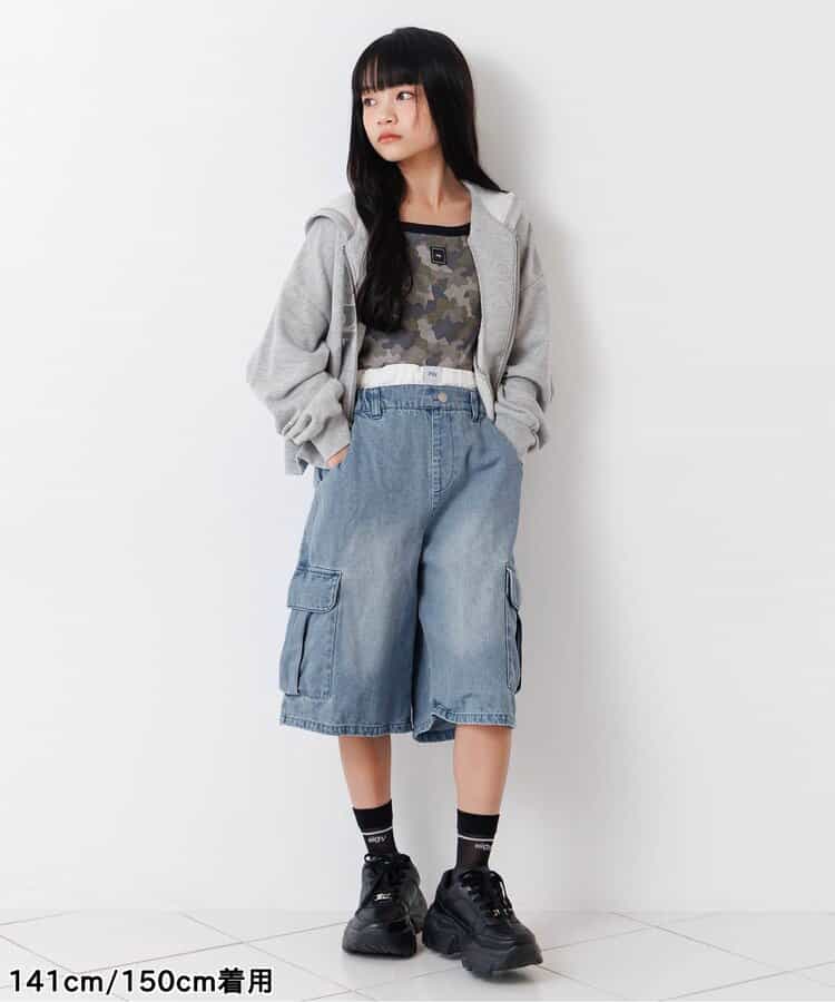 【2/13(金)21:00~販売】algy(アルジー)のパンツ「ワイドハーフパンツ」。これを持っておけば間違いなし!万能ボトムでスタイリングの幅も広がる◎【 algy ーアルジー ー 】『おしゃれを楽しみたいティーンズのリアルクローズ』着たい 欲しい トレンド・・・全部そろう小中学生向けブランドです。<お取り扱いのご注意>この商品はユーズド感を出す為、製品洗い・製品染め・ブリーチ(脱色)・生地切れ・糸切れ等の2次加工を施しております。製品の特性上1枚ずつの加工となり、多少の歪み・シワ・色の出方・風合い・サイズ等1枚ごとに微妙に違います。尚、着用や洗濯を繰り返すことにより加工が徐々に進行し、あたり・ほつれなどが表れます。以上の点をご留意の上、他の製品では味わえない雰囲気をお楽しみ下さい。