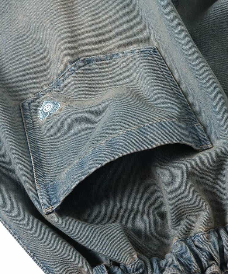 尚、着用や洗濯を繰り返すことにより加工が徐々に進行し、あたり・ほつれなどが表れます。以上の点をご留意の上、他の製品では味わえない雰囲気をお楽しみ下さい。