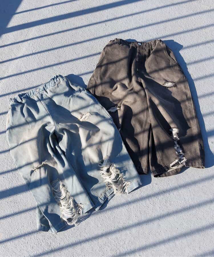 ルーズなシルエット&ダメージ感がたまらなくオシャレなワイドハーフパンツ★