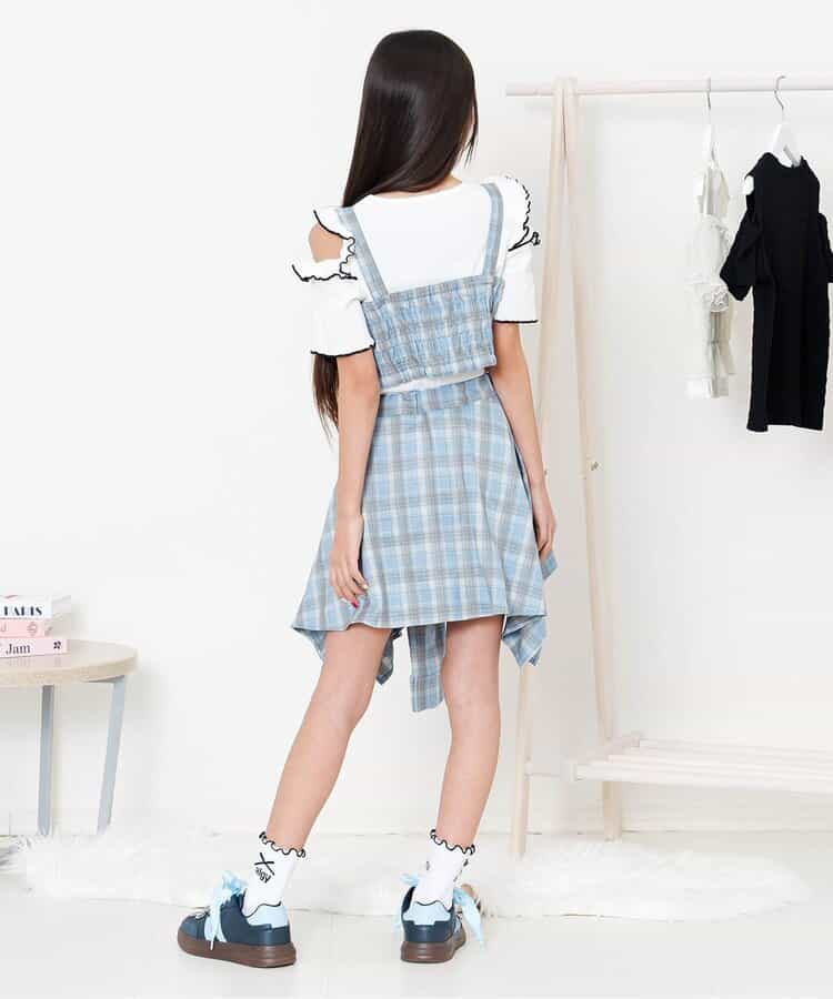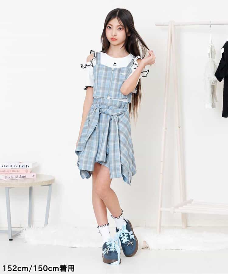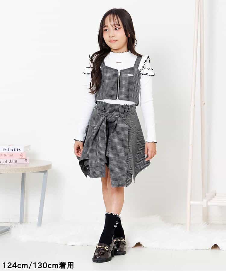 【2/16(月)21:00~販売】algy(アルジー)のパンツ「チェックビスチェ&シャツ巻き風キュロットセット」。トレンドデザインがプラスされた、これ1枚でおしゃみえできるアイテム◎【 algy ーアルジー ー 】『おしゃれを楽しみたいティーンズのリアルクローズ』着たい 欲しい トレンド・・・全部そろう小中学生向けブランドです。
