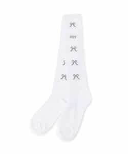 algy(アルジー)のタイツ・ソックス「りぼんロゴガーリーハイソックス」は、手頃な価格とおしゃれなデザインが人気!靴下のSS・S・10-12cm・13-15cm、タイツの70-80cm・80-90cm・90-100cmには基本的に靴下に滑り止め加工がございます。(一部除外あり)