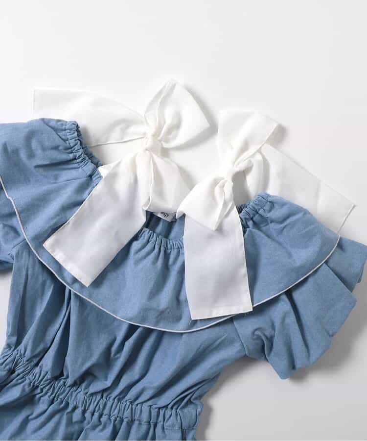 【6/19(木)21:00~販売】algy(アルジー)のワンピース「オフショルりぼんワンピ」。夏のおでかけに映えるさわやかなデニムカラーと、存在感抜群のチェック柄の2色展開。肩リボンはボタンで2段階のサイズ調節が可能◎リボンは縫い付けされているので、崩れる心配がなく安心してご着用いただけます。リボンにパフスリーブ、ふわっと広がるシルエット・・・女の子の可愛いを詰め込んだワンピです。S、Mサイズはミディ丈デザインでご用意しております >>【 algy ーアルジー ー 】『おしゃれを楽しみたいティーンズのリアルクローズ』着たい 欲しい トレンド・・・全部そろう小中学生向けブランドです。