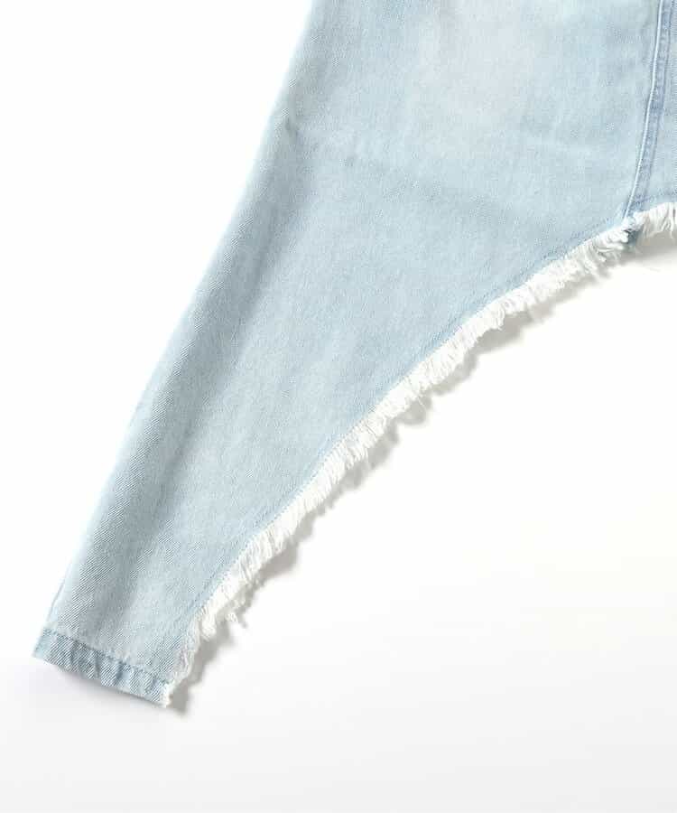 この商品はユーズド感を出す為、製品洗い・製品染め・ブリーチ(脱色)・生地切れ・糸切れ等の2次加工を施しております。