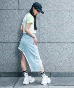 algy(アルジー)のスカート「アシメデニムスカート」。