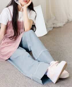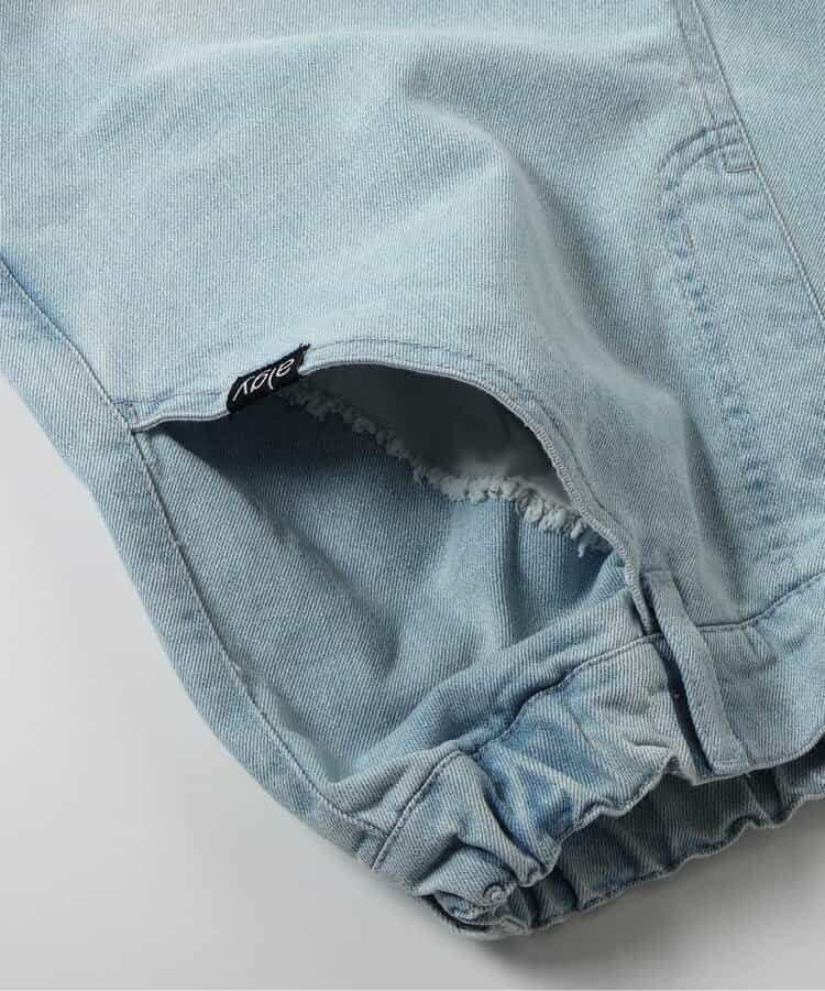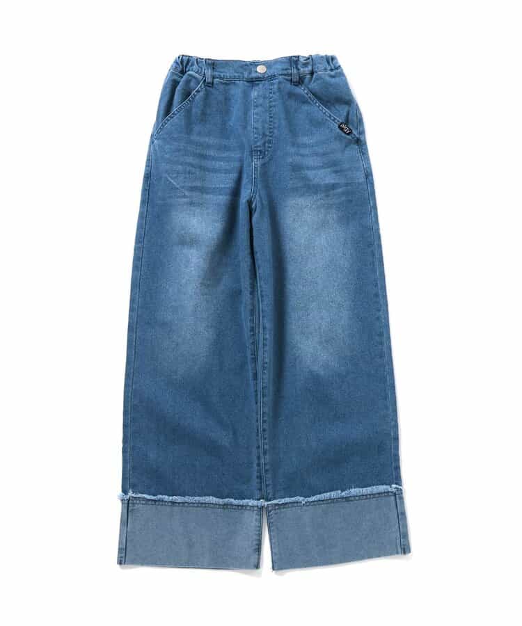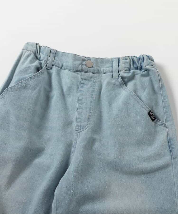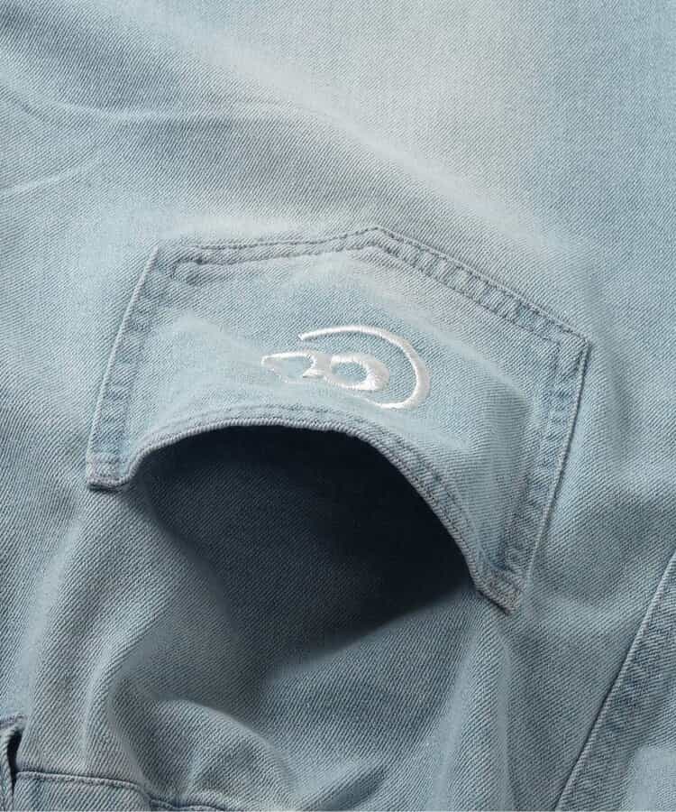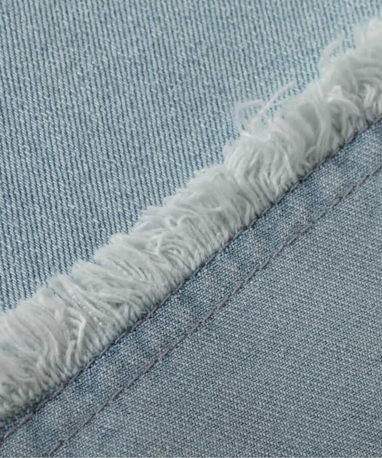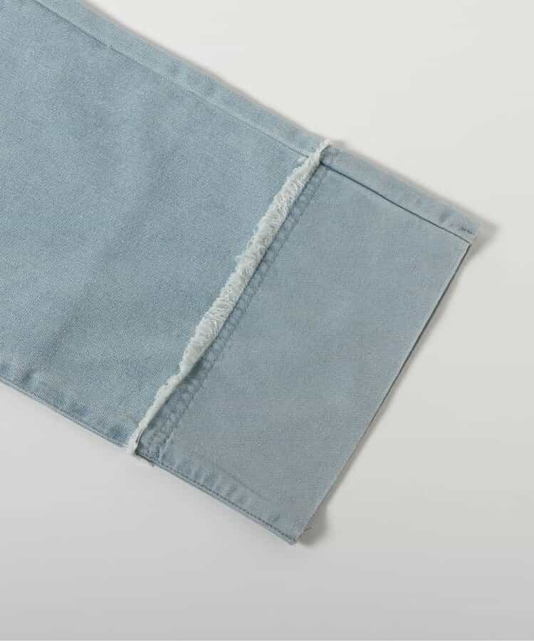 この商品はユーズド感を出す為、製品洗い・製品染め・ブリーチ(脱色)・生地切れ・糸切れ等の2次加工を施しております。