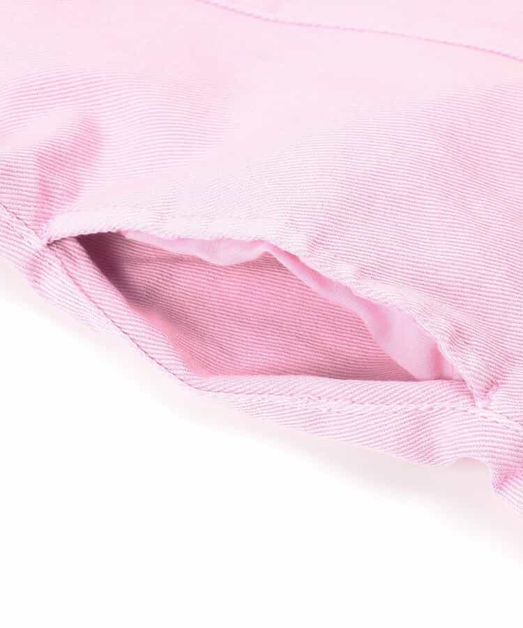 この商品はユーズド感を出す為、製品洗い・製品染め・ブリーチ(脱色)・生地切れ・糸切れ等の2次加工を施しております。