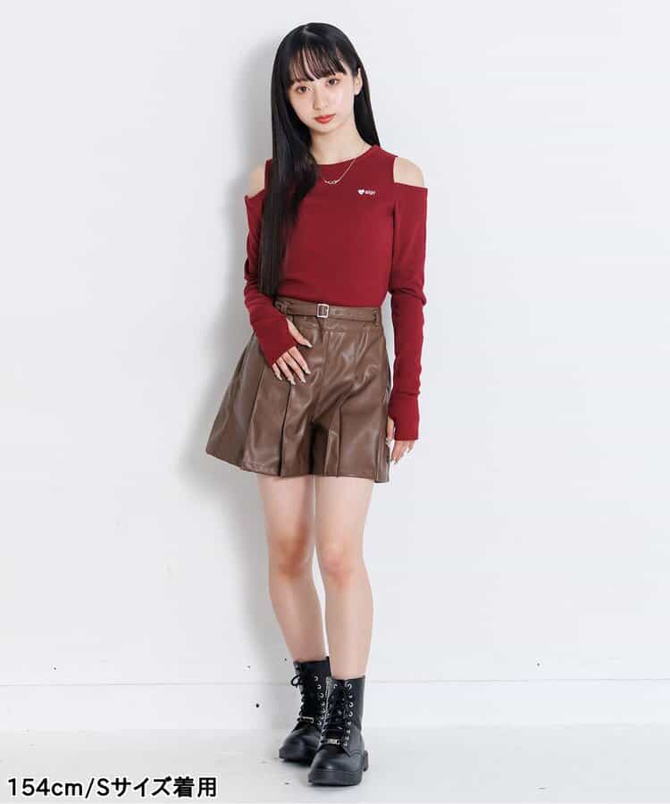 【8/19(火)21:00~販売】algy(アルジー)のパンツ「フェイクレザープリーツショーパン」。これを持っておけば間違いなし!万能ボトムでスタイリングの幅も広がる◎【 algy ーアルジー ー 】『おしゃれを楽しみたいティーンズのリアルクローズ』着たい 欲しい トレンド・・・全部そろう小中学生向けブランドです。