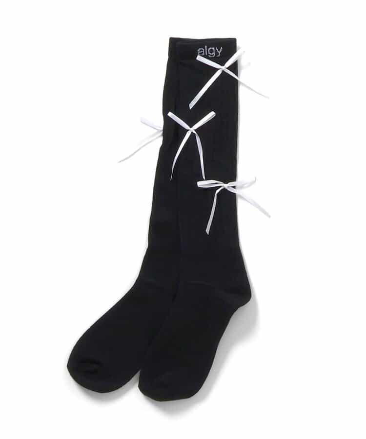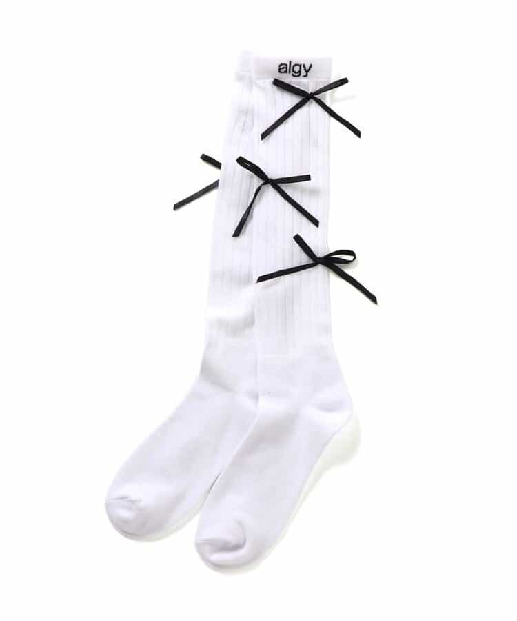 【7/4(金)21:00~販売】algy(アルジー)のタイツ・ソックス「りぼんハイソックス」。毎日使うものはお気に入りのデザインで!ちょっとしたプレゼントにもおすすめです◎【 algy ーアルジー ー 】『おしゃれを楽しみたいティーンズのリアルクローズ』着たい 欲しい トレンド・・・全部そろう小中学生向けブランドです。靴下のSS・S・10-12cm・13-15cm、タイツの70-80cm・80-90cm・90-100cmには基本的に靴下に滑り止め加工がございます。(一部除外あり)