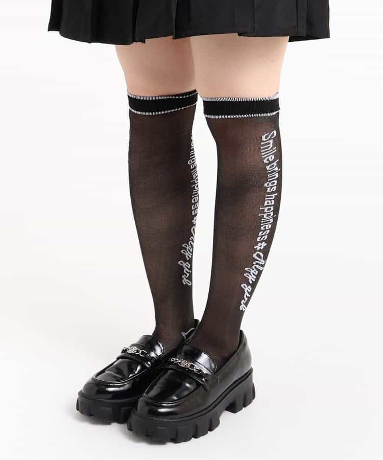 ALGY(アルジー)のタイツ・ソックス「タテロゴシアーニーハイソックス」は、手頃な価格とおしゃれなデザインが人気!靴下のSS・S・10-12cm・13-15cm、タイツの70-80cm・80-90cm・90-100cmには基本的に靴下に滑り止め加工がございます。(一部除外あり)